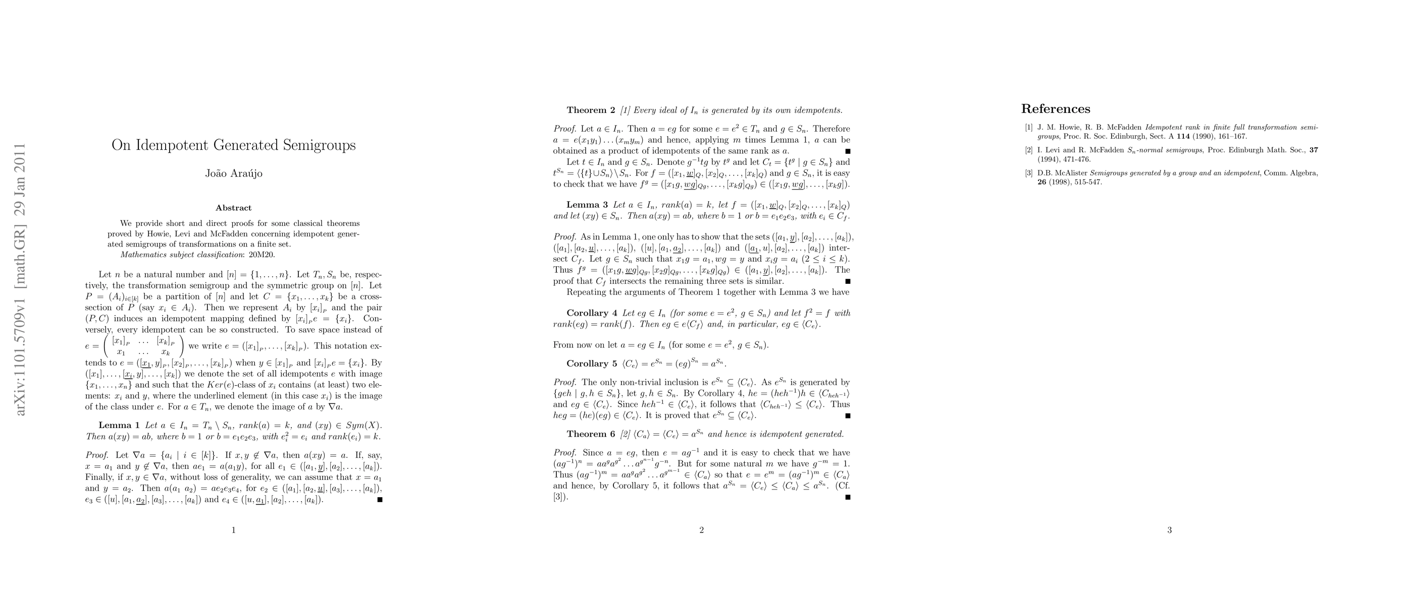 Summary: This paper offers concise proofs for classical theorems by Howie, Levi, and McFadden regarding idempotent generated semigroups of transformations on finite sets. The work aims to simplify and clarify existing results in this area.