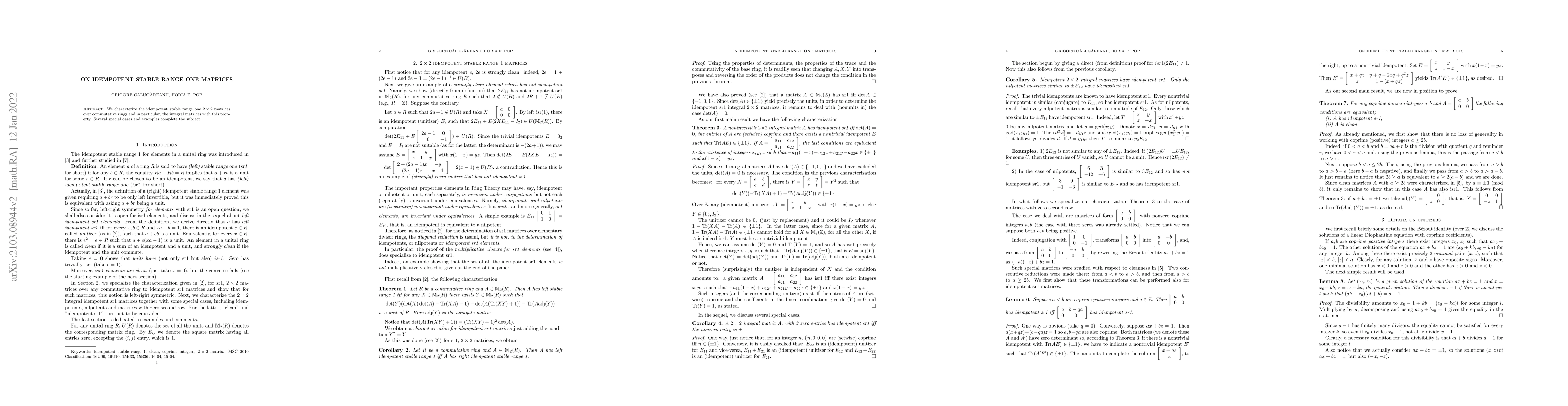 Summary: This paper explores idempotent stable range one $2\times 2$ matrices over commutative rings, specifically focusing on integral matrices with these properties and providing several special cases and illustrative examples.