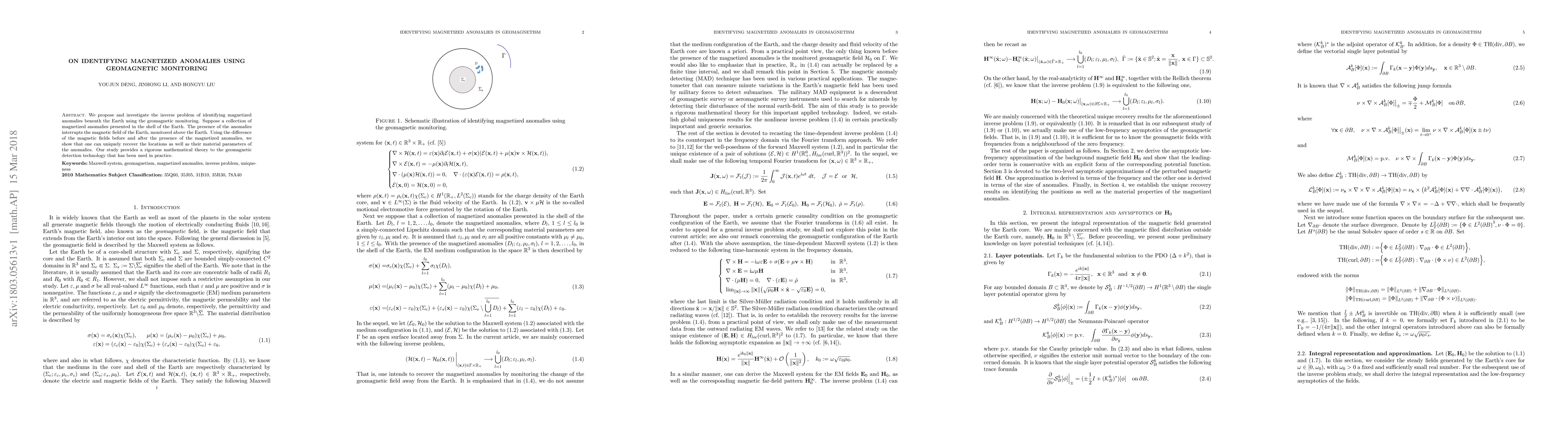 Researchers propose a method to identify magnetized anomalies beneath the Earth using geomagnetic monitoring, allowing for unique recovery of anomaly locations and material parameters.