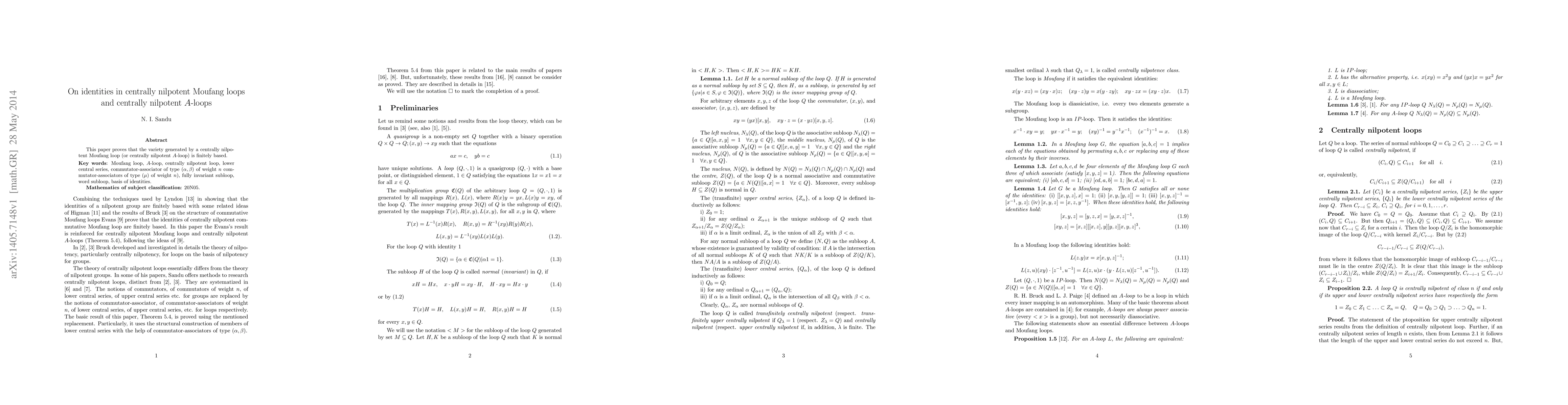 This paper proves that the variety generated by a centrally nilpotent Moufang loop (or centrally nilpotent A-loop) is finitely based.