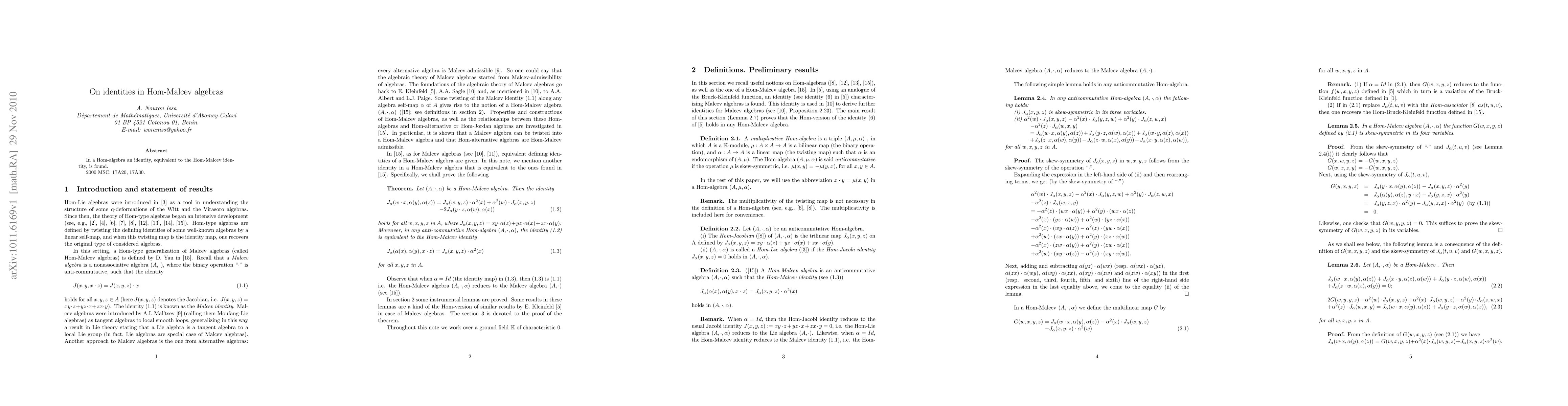 In a Hom-Malcev algebra an identity, equivalent to the Hom-Malcev identity, is found.