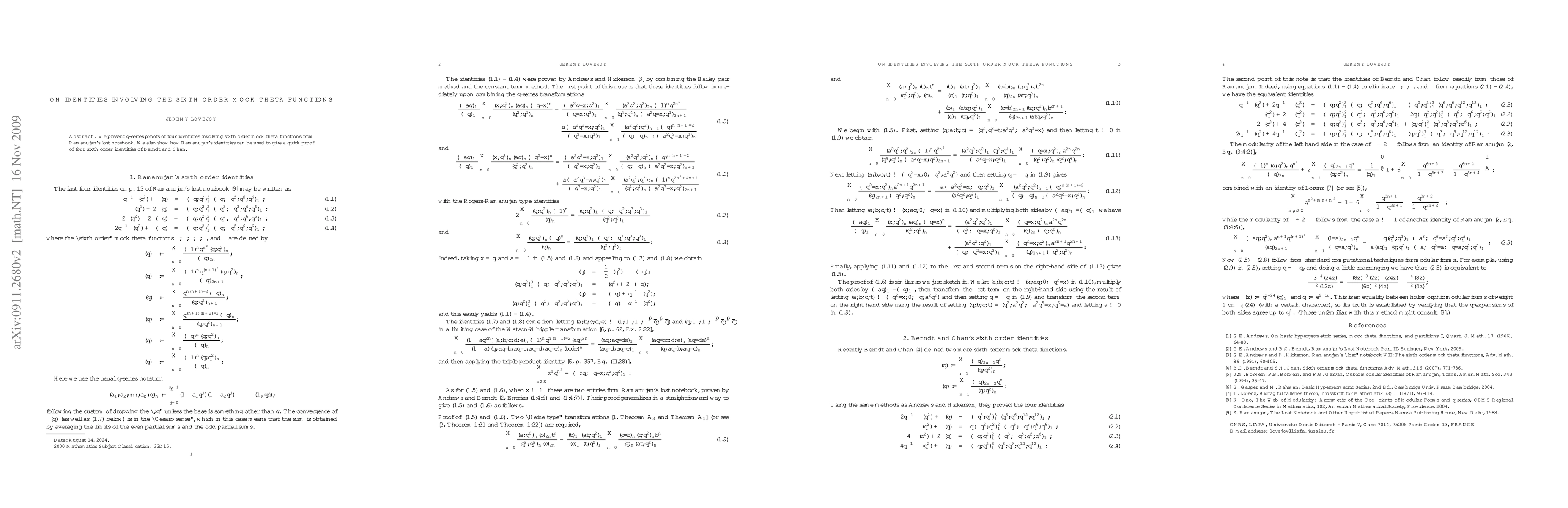 This paper provides q-series proofs for four identities related to sixth order mock theta functions from Ramanujan's lost notebook and demonstrates how Ramanujan's identities can quickly prove four additional sixth order identities by Berndt and Chan.