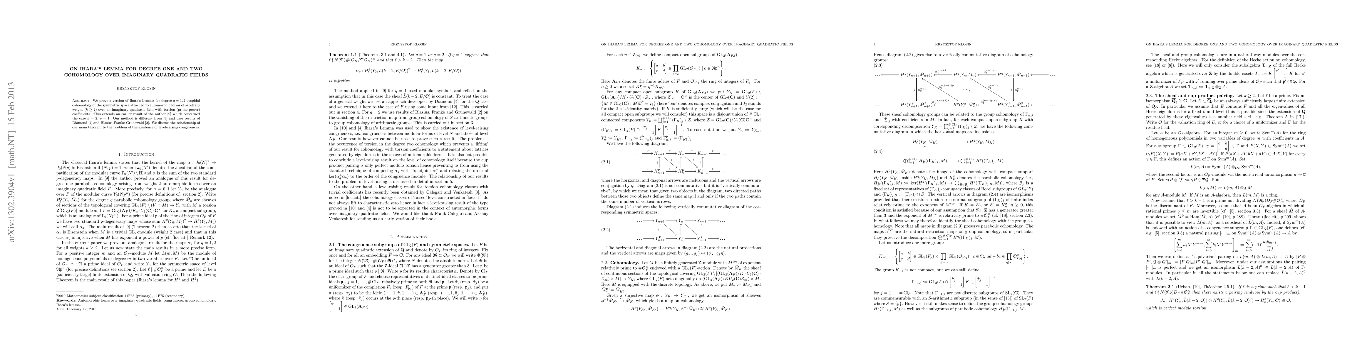 We prove a version of Ihara's Lemma for degree q=1,2 cuspidal cohomology of the symmetric space attached to automorphic forms of arbitrary weight (k\geq 2) over an imaginary quadratic field with torsion (prime power) coefficients. This extends an earlier result of the author which concerned the case k=2, q=1. Our method here is different and uses results of Diamond and Blasius-Franke-Grunewald. We discuss the relationship of our main theorem to the problem of the existence of level-raising congruences.