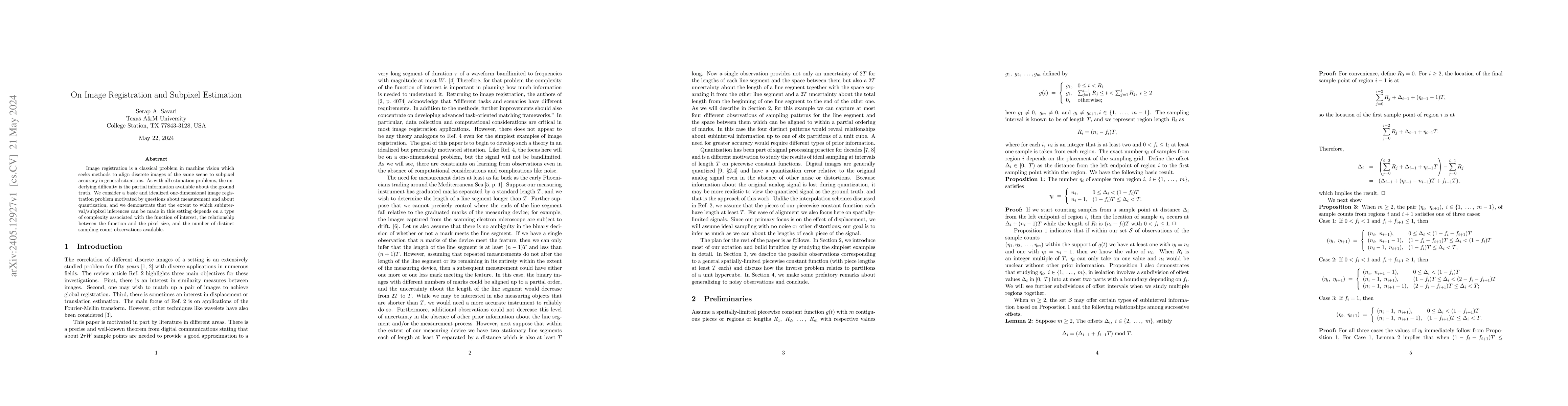 This paper investigates the challenges and methodologies in image registration for aligning images to subpixel accuracy, focusing on a simplified one-dimensional model. It explores the factors influencing subpixel inference, including function complexity, pixel size, and sampling count.
