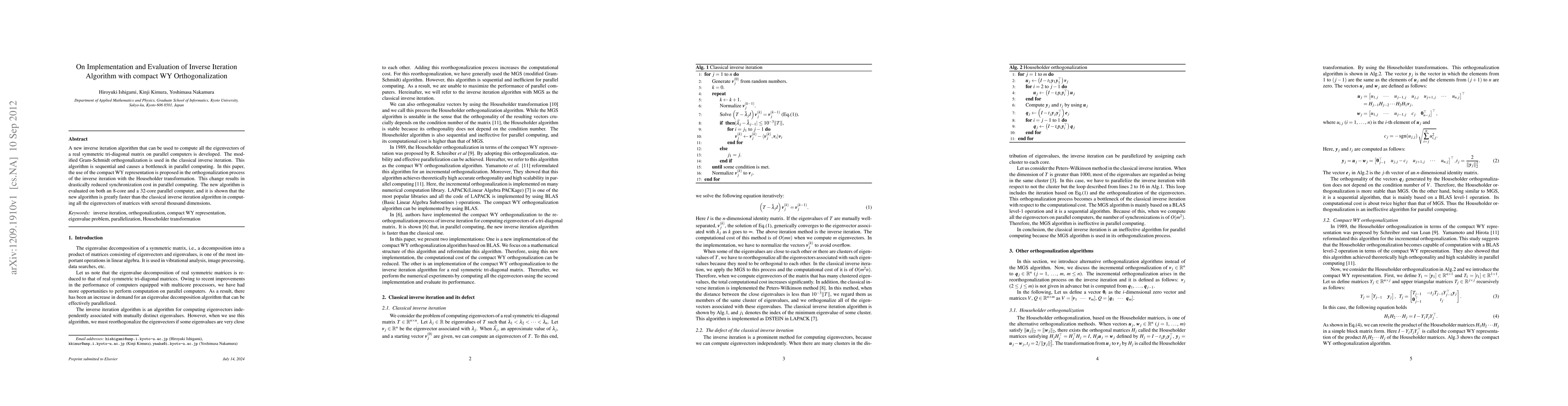 This work introduces a novel approach to eigensolver algorithms, combining the benefits of inverse iteration and compact WY orthogonalization for efficient solution of large-scale eigenvalue problems.