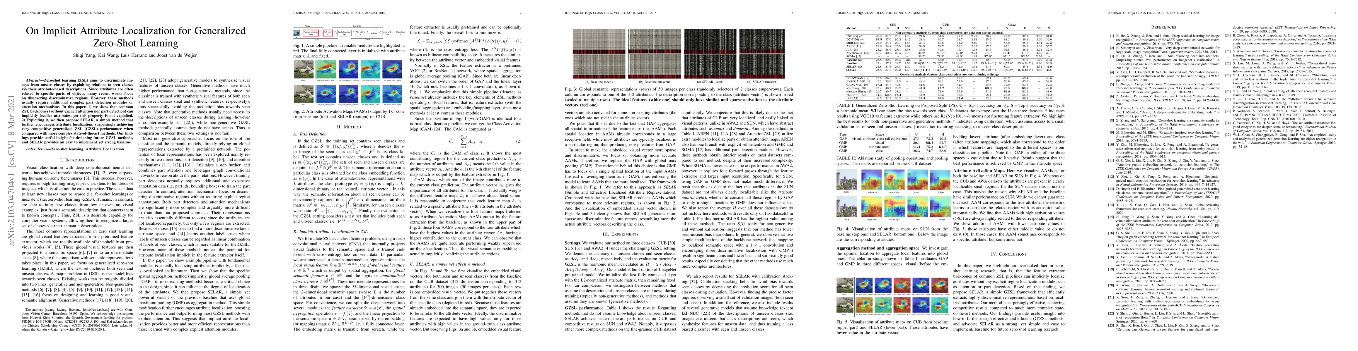 Zero-shot learning (ZSL) aims to discriminate images from unseen classes by exploiting relations to seen classes via their attribute-based descriptions. Since attributes are often related to specific parts of objects, many recent works focus on discovering discriminative regions. However, these methods usually require additional complex part detection modules or attention mechanisms. In this paper, 1) we show that common ZSL backbones (without explicit attention nor part detection) can implicitly localize attributes, yet this property is not exploited. 2) Exploiting it, we then propose SELAR, a simple method that further encourages attribute localization, surprisingly achieving very competitive generalized ZSL (GZSL) performance when compared with more complex state-of-the-art methods. Our findings provide useful insight for designing future GZSL methods, and SELAR provides an easy to implement yet strong baseline.