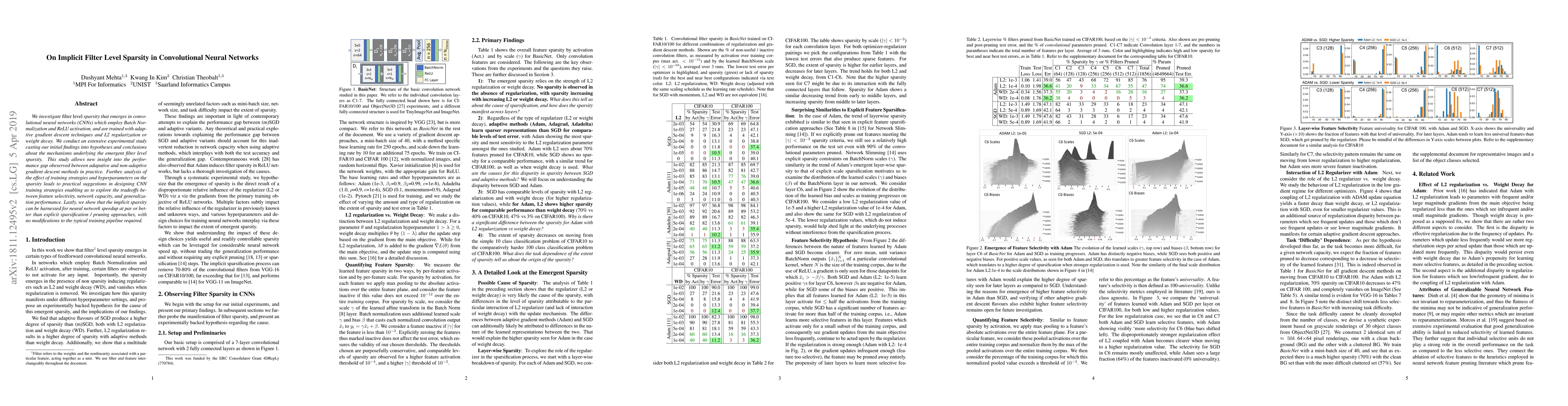 We investigate filter level sparsity that emerges in convolutional neural networks (CNNs) which employ Batch Normalization and ReLU activation, and are trained with adaptive gradient descent techniques and L2 regularization or weight decay. We conduct an extensive experimental study casting our initial findings into hypotheses and conclusions about the mechanisms underlying the emergent filter level sparsity. This study allows new insight into the performance gap obeserved between adapative and non-adaptive gradient descent methods in practice. Further, analysis of the effect of training strategies and hyperparameters on the sparsity leads to practical suggestions in designing CNN training strategies enabling us to explore the tradeoffs between feature selectivity, network capacity, and generalization performance. Lastly, we show that the implicit sparsity can be harnessed for neural network speedup at par or better than explicit sparsification / pruning approaches, with no modifications to the typical training pipeline required.