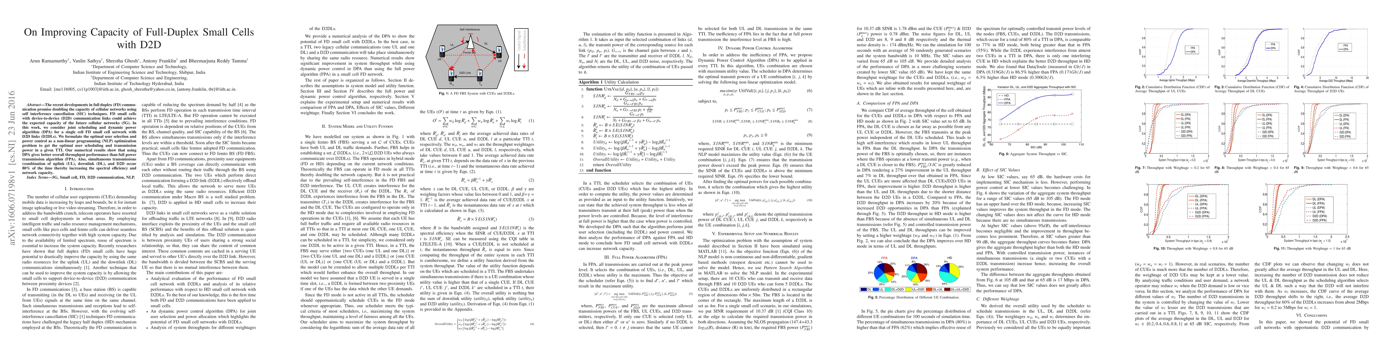This paper proposes a joint scheduling and dynamic power algorithm for full-duplex small cells incorporating device-to-device communication, optimizing user selection and power control to enhance network capacity. Results indicate that the dynamic power algorithm outperforms a full power transmission method, with simultaneous transmissions occurring 80% of the time to boost spectral efficiency.