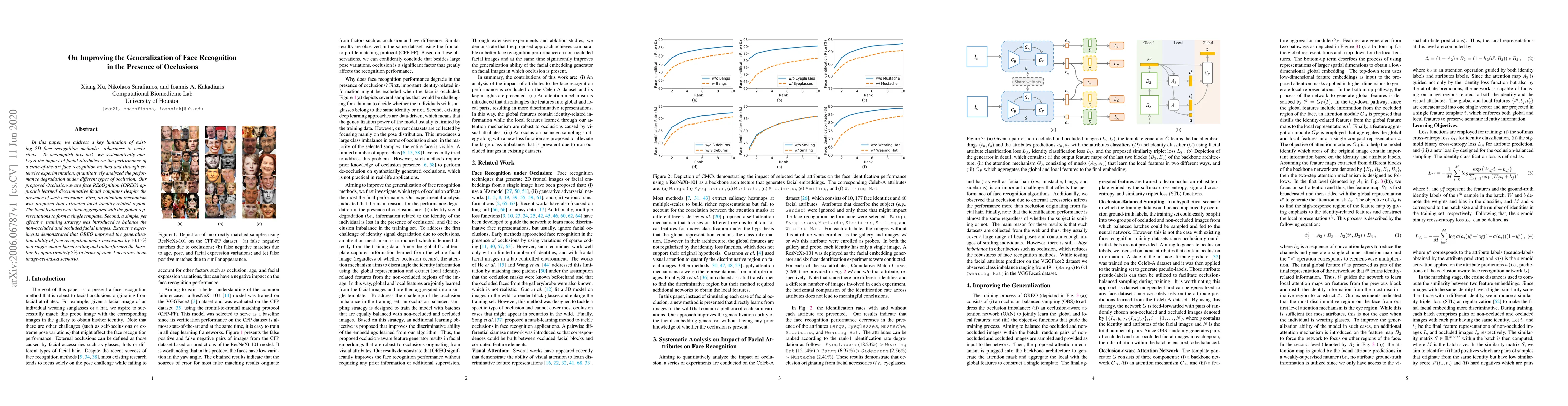 This paper proposes the OREO approach to improve face recognition robustness to occlusions by integrating an attention mechanism and a balanced training strategy. Experiments show OREO enhances generalization, achieving a 10.17% improvement in single-image settings and a 2% boost in rank-1 accuracy in image-set scenarios.