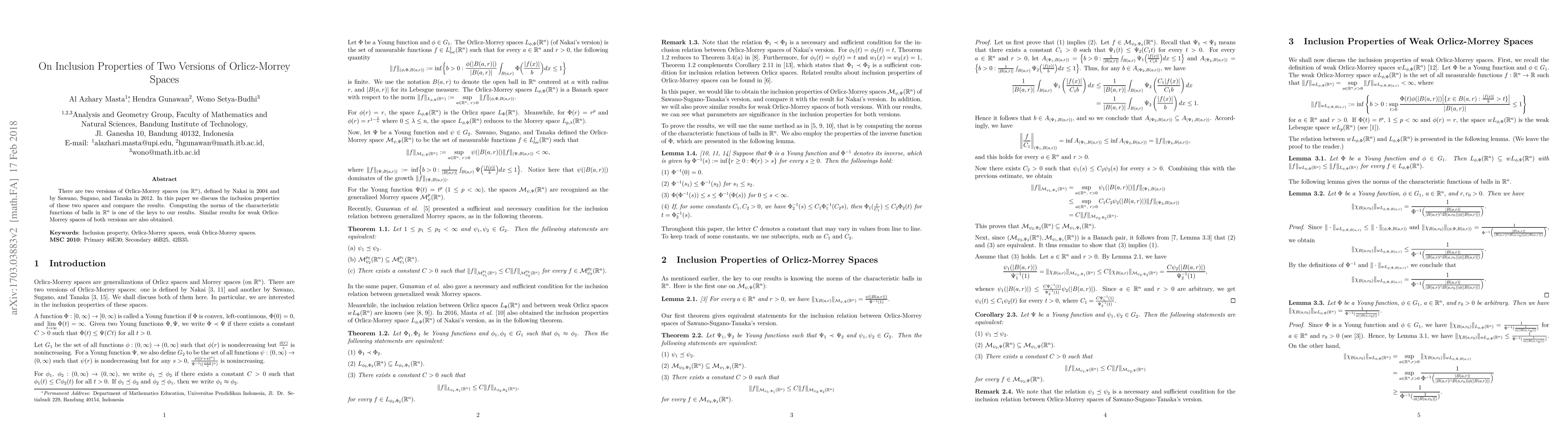 This paper investigates the inclusion properties between two versions of Orlicz-Morrey spaces defined by Nakai and Sawano, Sugano, and Tanaka. The study includes computing norms of characteristic functions of balls to compare the spaces, extending the analysis to weak versions as well.