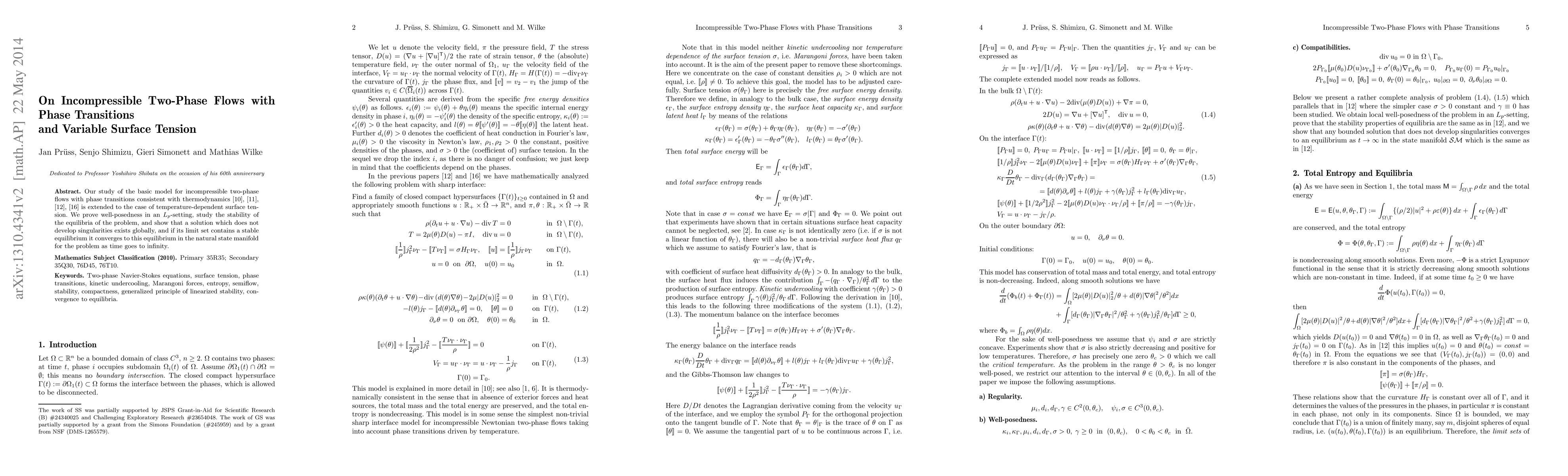 This paper extends the study of incompressible two-phase flows with phase transitions to include temperature-dependent surface tension, proving well-posedness in an Lp-setting and demonstrating global existence of solutions without singularities, which converge to stable equilibria as time approaches infinity.