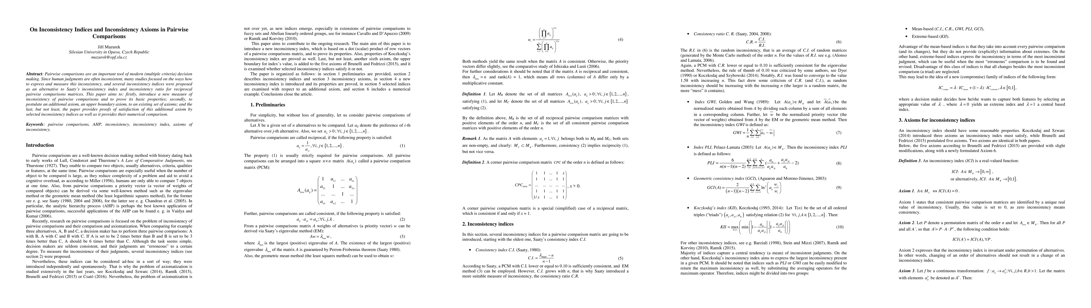 The research provides a new measure of inconsistency based on the dot product of row vectors