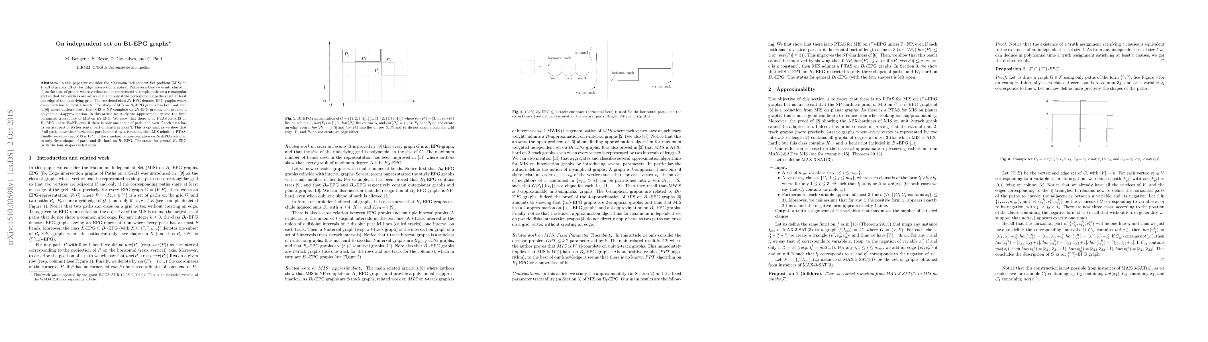 This paper investigates the Maximum Independent Set (MIS) problem on $B_1$-EPG graphs, demonstrating that MIS lacks a Polynomial Time Approximation Scheme (PTAS) unless P=NP, even with simple path constraints. It concludes that MIS is Fixed Parameter Tractable (FPT) for restricted $B_1$-EPG with three path shapes but remains $W_1$-hard for $B_2$-EPG.