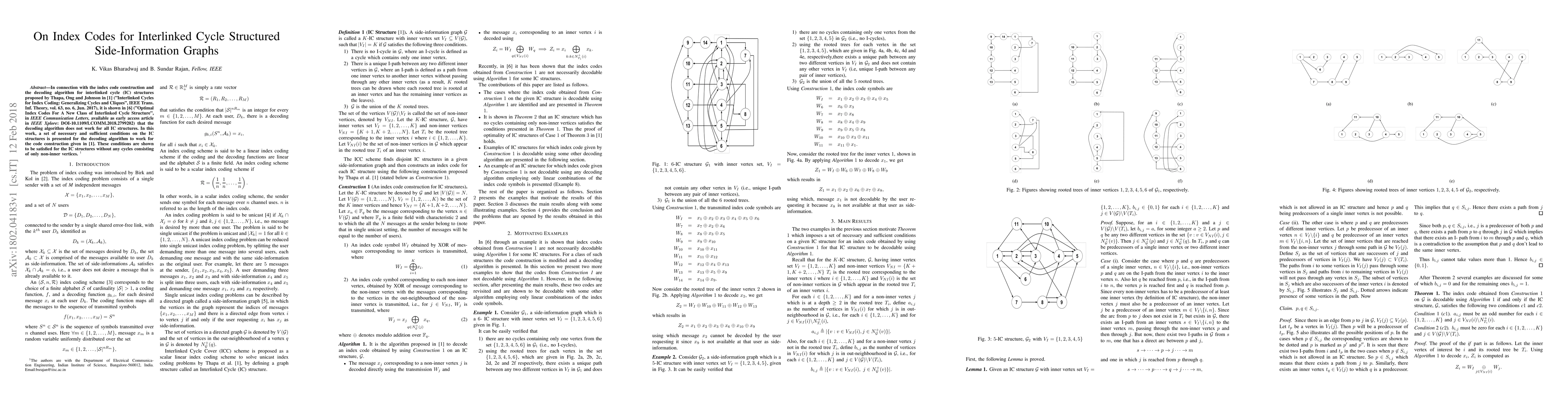 In connection with the index code construction and the decoding algorithm for interlinked cycle (IC) structures proposed by Thapa, Ong and Johnson in \cite{TOJ} ("Interlinked Cycles for Index Coding: Generalizing Cycles and Cliques", IEEE Trans. Inf. Theory, vol. 63, no. 6, Jun. 2017), it is shown in \cite{VaR} ("Optimal Index Codes For A New Class of Interlinked Cycle Structure", in \textit{IEEE Communication Letters,} available as early access article in \textit{IEEE Xplore}: DOI-10.1109/LCOMM.2018.2799202) that the decoding algorithm does not work for all IC structures. In this work, a set of necessary and sufficient conditions on the IC structures is presented for the decoding algorithm to work for the code construction given in \cite{TOJ}. These conditions are shown to be satisfied for the IC structures without any cycles consisting of only non-inner vertices.