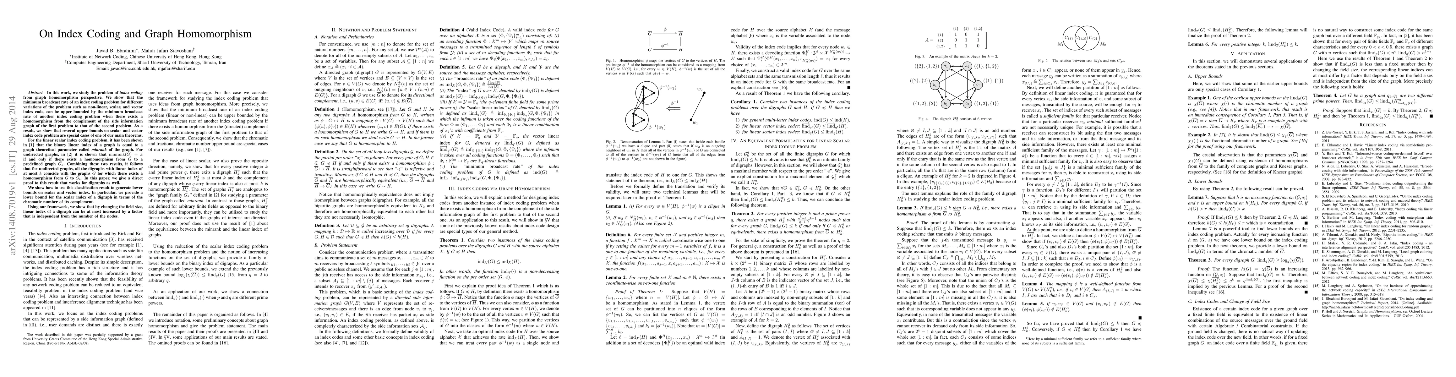This paper explores index coding through graph homomorphism, demonstrating that the minimum broadcast rate for various index coding problems can be upper bounded by a related problem when a homomorphism exists. It provides a direct proof for the classification of digraphs based on their linear index and uses this to generate lower bounds on scalar and vector indices, showing that the linear index can be increased by a field size-dependent factor.