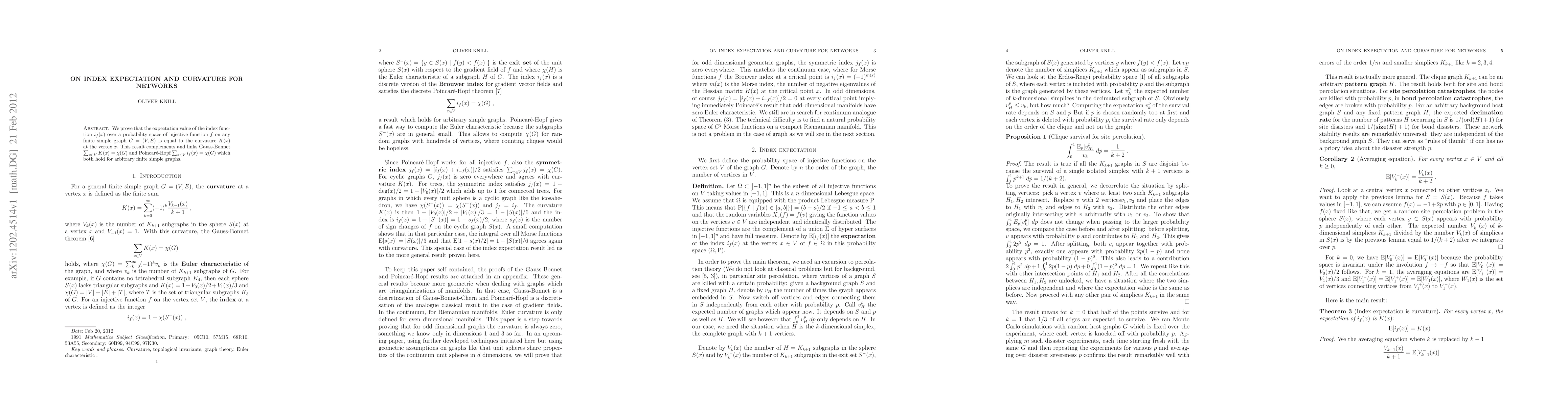 We prove that the expectation value of the index function i(x) over a probability space of injective function f on any finite simple graph G=(V,E) is equal to the curvature K(x) at the vertex x. This result complements and links Gauss-Bonnet sum K(x) = chi(G) and Poincare-Hopf sum i(x) = chi(G) which both hold for arbitrary finite simple graphs.