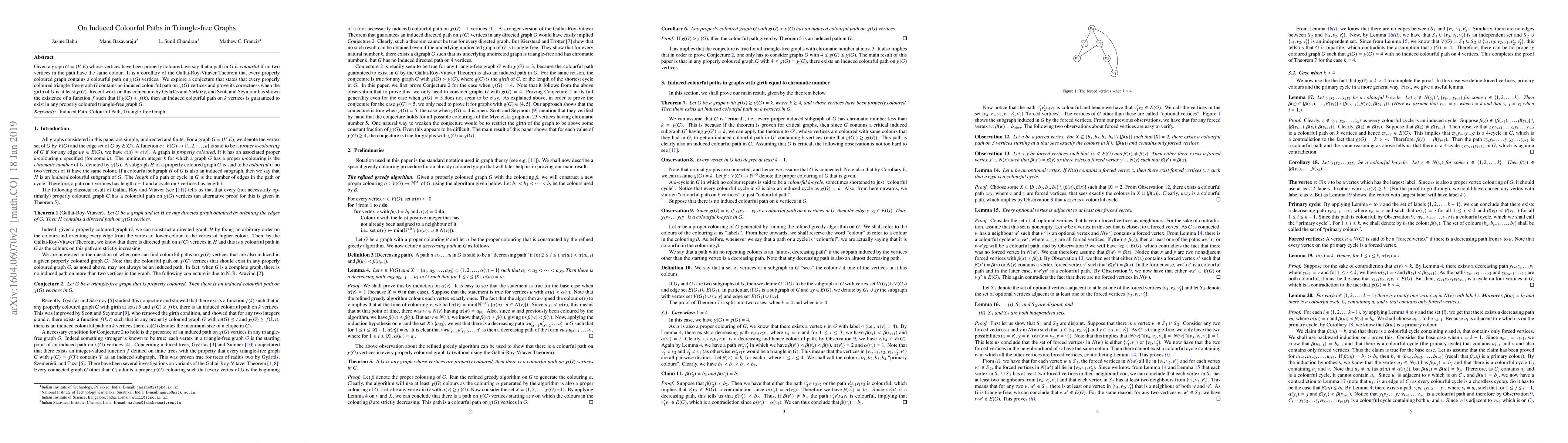 A research paper proves that every properly coloured triangle-free graph contains an induced colourful path on a specific number of vertices when the girth is at least this many, resolving a conjecture in graph theory.