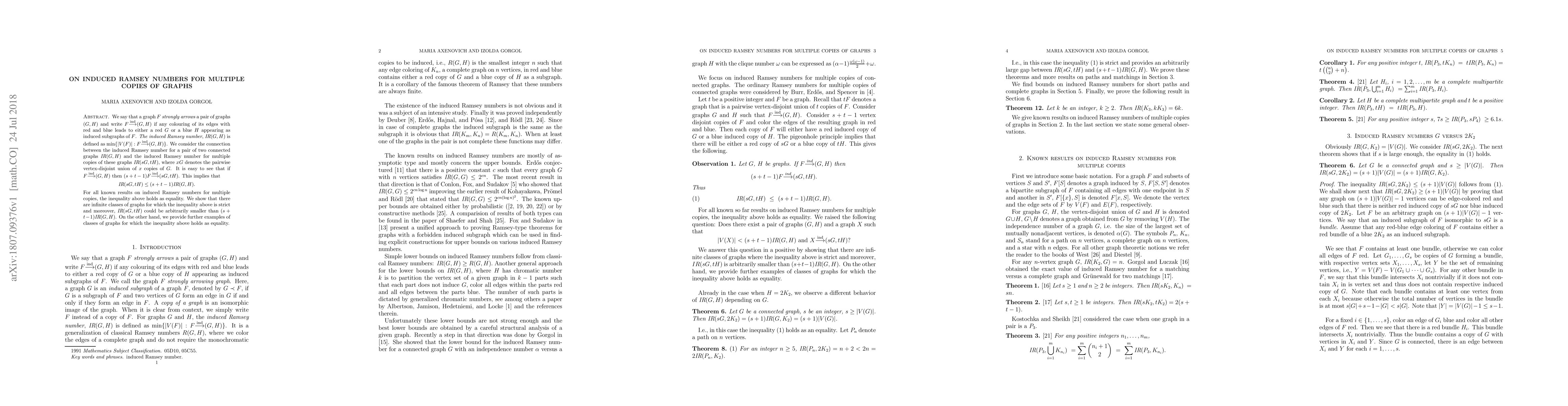 This paper investigates the relationship between induced Ramsey numbers for a pair of graphs and for multiple copies of these graphs. It demonstrates that for certain infinite classes of graphs, the induced Ramsey number for multiple copies can be significantly smaller than the expected value, while for others, the equality holds.
