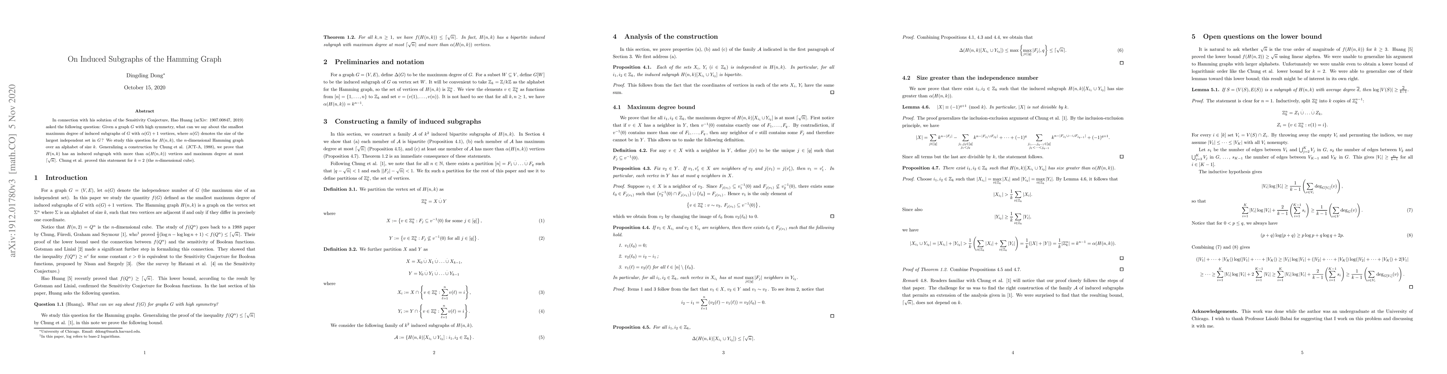 Hao Huang's Sensitivity Conjecture led to an inquiry about induced subgraphs in highly symmetric graphs. This paper studies the $n$-dimensional Hamming graph $H(n,k)$, proving it contains an induced subgraph with more than $\alpha(H(n,k))$ vertices and maximum degree at most $\lceil\sqrt{n}\rceil$.
