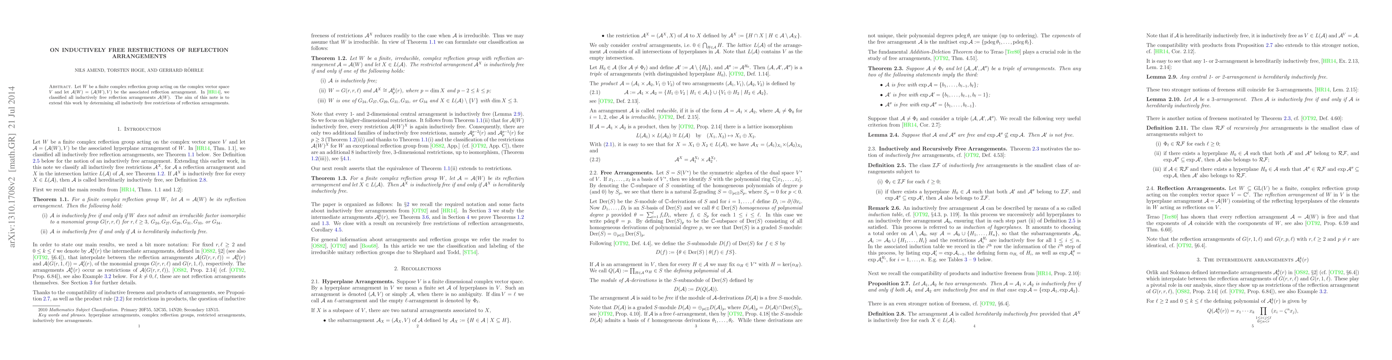 This paper classifies all inductively free restrictions of reflection arrangements associated with finite complex reflection groups, building on previous work that classified the full arrangements. The focus is on identifying these restrictions that maintain inductively free properties.