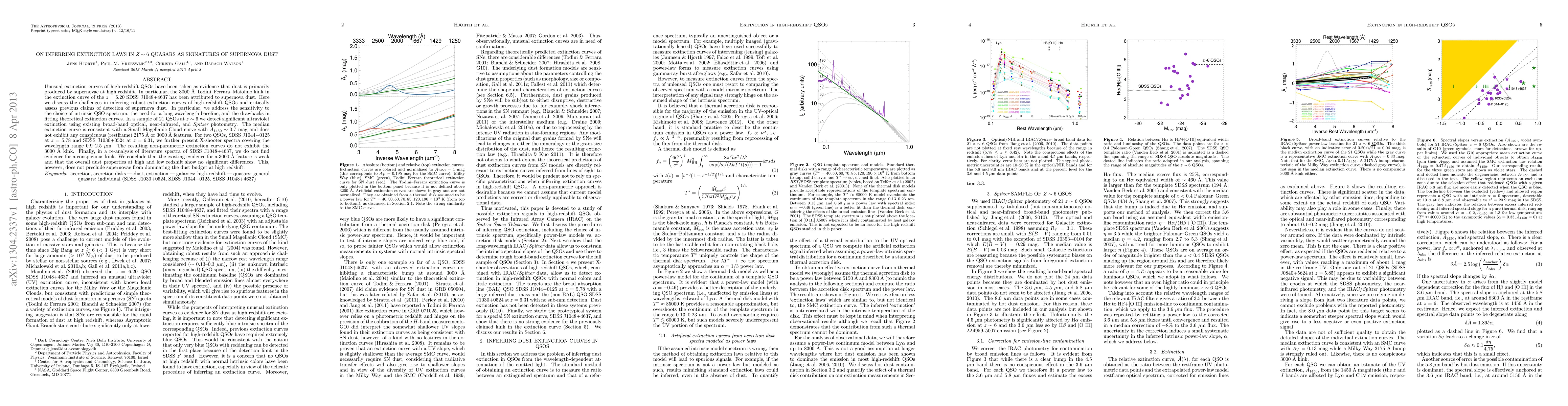 Unusual extinction curves of high-redshift QSOs have been taken as evidence that dust is primarily produced by supernovae at high redshift. In particular, the 3000 A Todini-Ferrara-Maiolino kink in the extinction curve of the z = 6.20 SDSS J1048+4637 has been attributed to supernova dust. Here we discuss the challenges in inferring robust extinction curves of high-redshift QSOs and critically assess previous claims of detection of supernova dust. In particular, we address the sensitivity to the choice of intrinsic QSO spectrum, the need for a long wavelength baseline, and the drawbacks in fitting theoretical extinction curves. In a sample of 21 QSOs at z ~ 6 we detect significant ultraviolet extinction using existing broad-band optical, near-infrared, and Spitzer photometry. The median extinction curve is consistent with a Small Magellanic Cloud curve with A_1450 ~ 0.7 mag and does not exhibit any conspicuous (restframe) 2175 A or 3000 A features. For two QSOs, SDSS J1044-0125 at z = 5.78 and SDSS J1030+0524 at z = 6.31, we further present X-shooter spectra covering the wavelength range 0.9-2.5 um. The resulting non-parametric extinction curves do not exhibit the 3000 A kink. Finally, in a re-analysis of literature spectra of SDSS J1048+4637, we do not find evidence for a conspicuous kink. We conclude that the existing evidence for a 3000 A feature is weak and that the overall dust properties at high and low redshift show no significant differences. This, however, does not preclude supernovae from dominating the dust budget at high redshift.