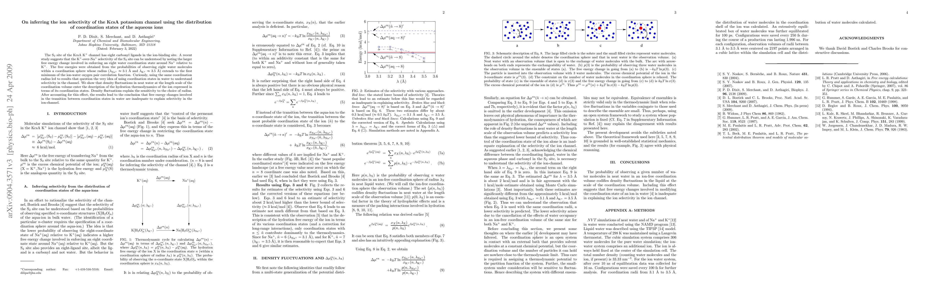 The S$_2$ site of the KcsA K$^+$ channel has eight carbonyl ligands in the ion-binding site. A recent study suggests that the K$^+$-over-Na$^+$ selectivity of the S$_2$ site can be understood by noting the larger free energy change involved in enforcing an eight water coordination state around Na$^+$ relative to K$^+$. The free energies were obtained from the probabilities of observing eight water molecules within a coordination sphere whose radius ($\lambda_{\rm Na^+} \approx 3.1$ {\AA} and $\lambda_{\rm K^+} \approx 3.5$ {\AA}) extends to the first minimum of the ion-water oxygen pair correlation function. Curiously, using the same coordination radius led to results that question the very idea of using coordination states in water to understand selectivity in the channel. We show that density fluctuations in neat water at the length scale of the coordination volume enter the description of the hydration thermodynamics of the ion expressed in terms of its coordination states. Density fluctuations explain the sensitivity to the choice of radius. After accounting for this effect, the results lead to the conclusion that free energy changes involved in the transition between coordination states in water are inadequate to explain selectivity in the ion-channel.