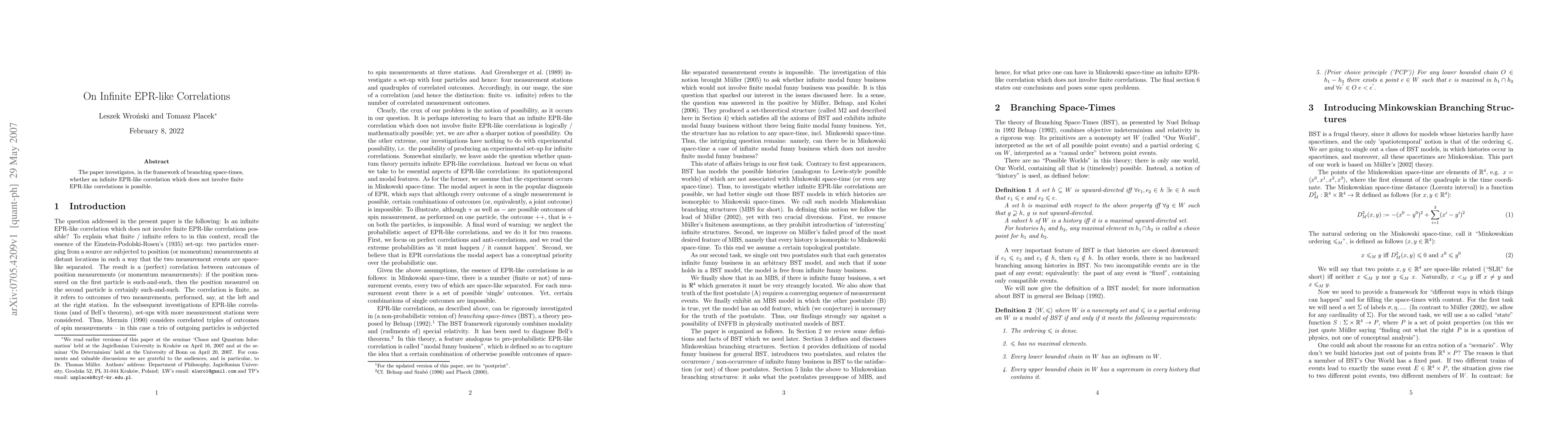 Researchers investigate if infinite EPR-like correlations can exist in branching space-times without finite correlations, exploring the implications of such a phenomenon.