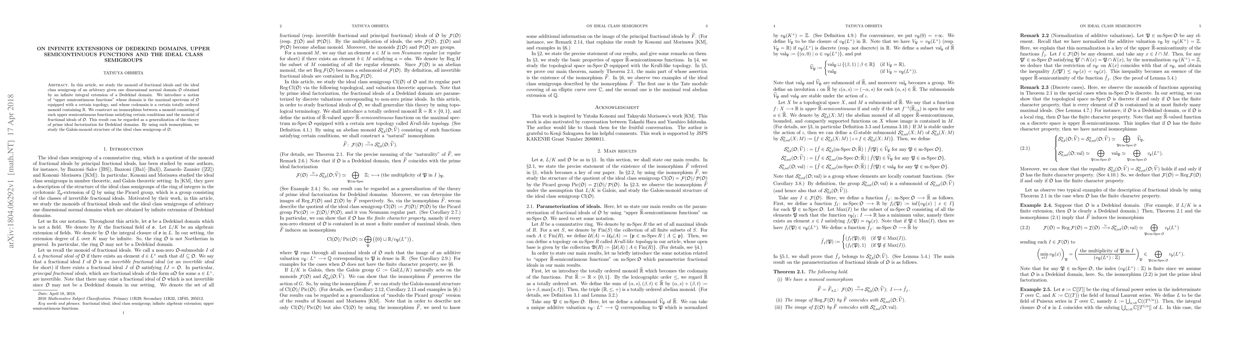 In this article, we study the monoid of fractional ideals and the ideal class semigroup of an arbitrary given one dimensional normal domain O obtained by an infinite integral extension of a Dedekind domain. We introduce a notion of "upper semicontinuous functions" whose domain is the maximal spectrum of O equipped with a certain topology, and whose codomain is a certain totally ordered monoid containing the set of real numbers. We construct an isomorphism between a monoid consisting of such upper semicontinuous functions satisfying certain conditions and the monoid of fractional ideals of O. This result can be regarded as a generalization of the theory of prime ideal factorization for Dedekind domains. By using such isomorphism, we study the Galois-monoid structure of the ideal class semigroup of O.