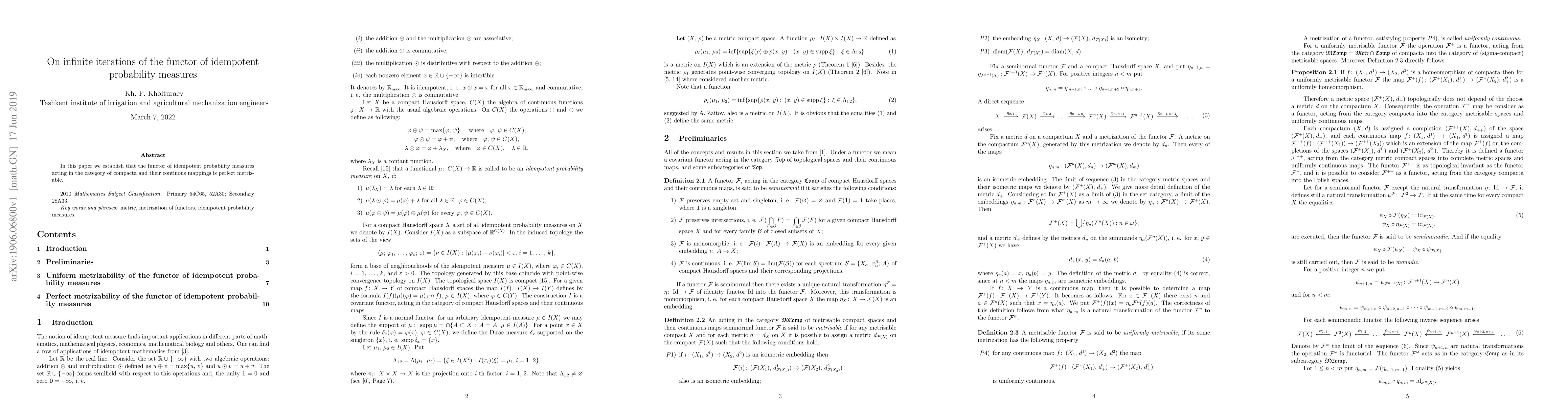 Summary: This research demonstrates that the functor of idempotent probability measures in the category of compacta and continuous mappings is perfect and metrisable, highlighting its robustness in mathematical analysis.