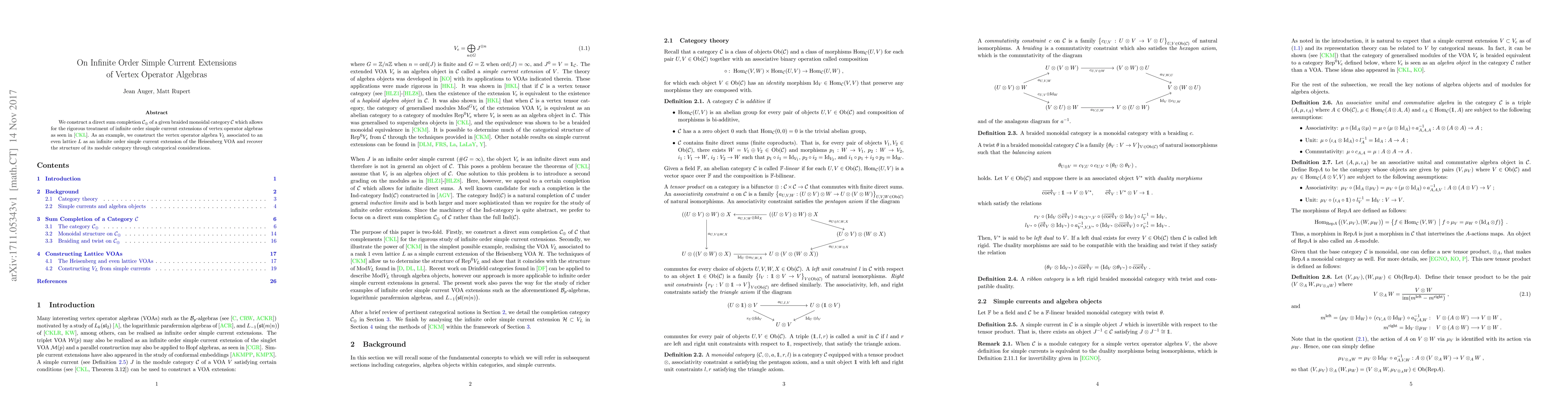 This paper constructs a direct sum completion of a braided monoidal category to rigorously handle infinite order simple current extensions of vertex operator algebras, exemplified by the construction of the $V_L$ vertex operator algebra as an extension of the Heisenberg VOA.