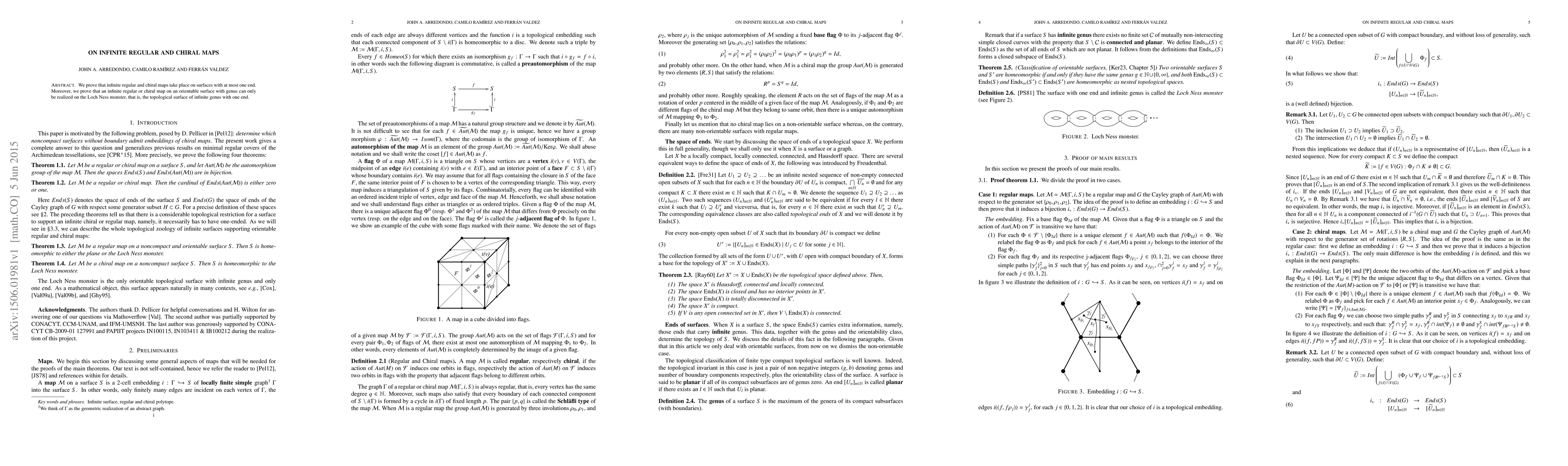 Summary: This paper proves that infinite regular and chiral maps occur on surfaces with at most one end, and specifically, such maps on orientable surfaces with genus can only exist on the Loch Ness monster, a surface of infinite genus with one end.