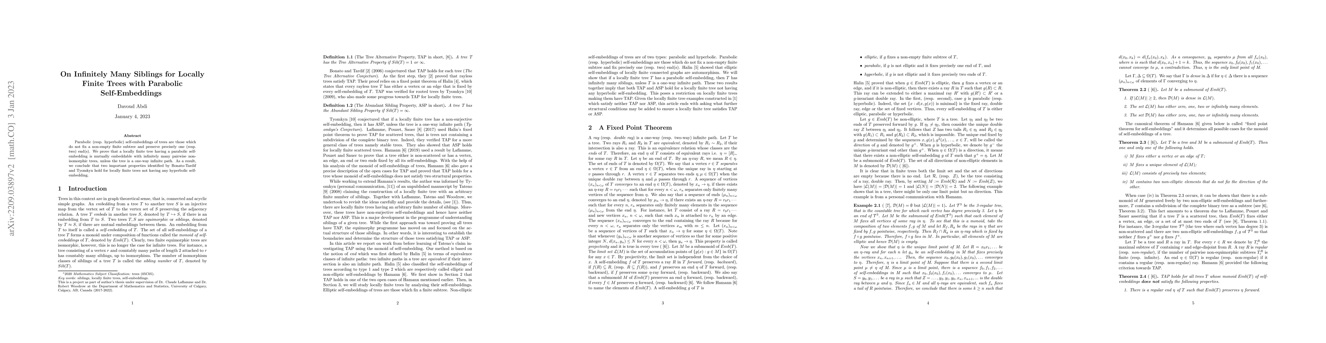 Summary: This paper proves that locally finite trees with parabolic self-embeddings can be mutually embedded with infinitely many distinct trees, unless they are one-way infinite paths. It also confirms two significant properties for such trees without hyperbolic self-embeddings.