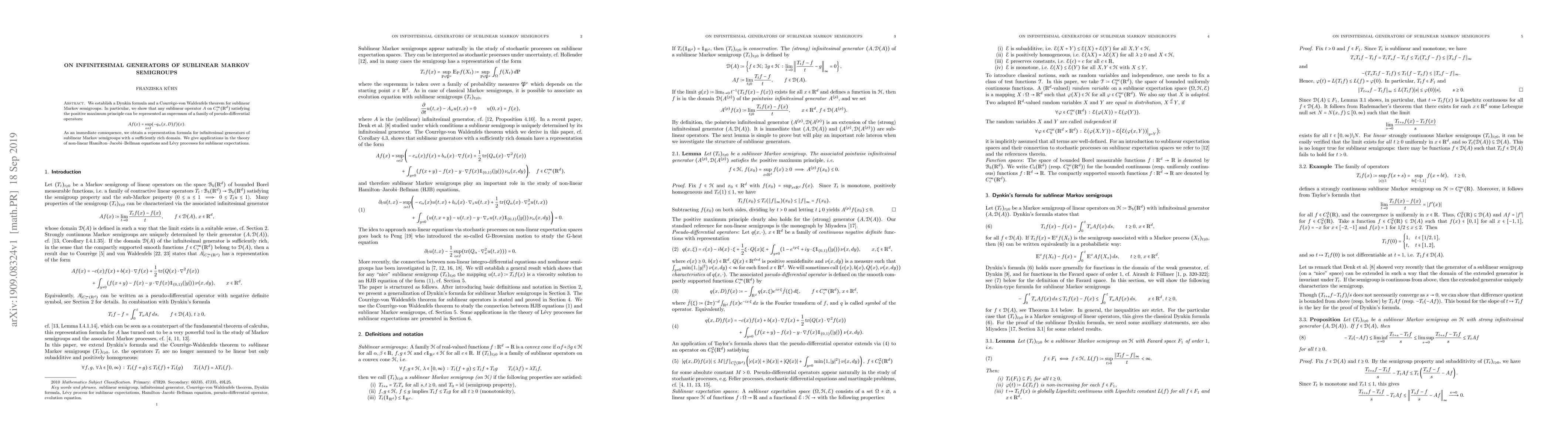 This paper establishes a Dynkin formula and a Courrège-von Waldenfels theorem for sublinear Markov semigroups, showing that any sublinear operator can be represented as a supremum of pseudo-differential operators. Applications include the theory of non-linear Hamilton-Jacobi-Bellman equations and Lévy processes for sublinear expectations.