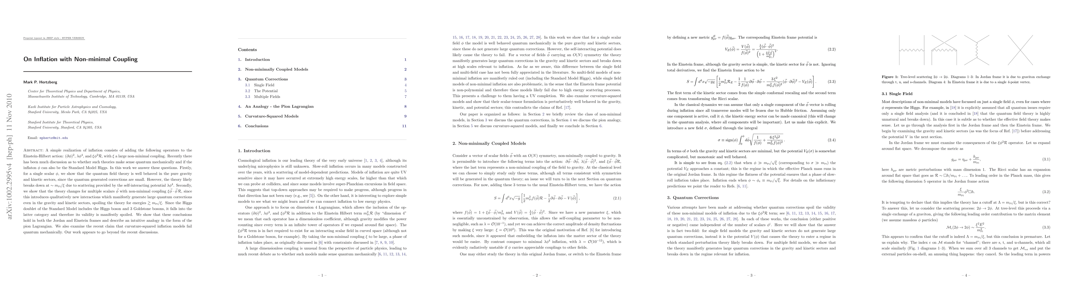 A simple realization of inflation consists of adding the following operators to the Einstein-Hilbert action: (partial phi)^2, lambda phi^4, and xi phi^2 R, with xi a large non-minimal coupling. Recently there has been much discussion as to whether such theories make sense quantum mechanically and if the inflaton phi can also be the Standard Model Higgs. In this note we answer these questions. Firstly, for a single scalar phi, we show that the quantum field theory is well behaved in the pure gravity and kinetic sectors, since the quantum generated corrections are small. However, the theory likely breaks down at ~ m_pl / xi due to scattering provided by the self-interacting potential lambda phi^4. Secondly, we show that the theory changes for multiple scalars phi with non-minimal coupling xi phi dot phi R, since this introduces qualitatively new interactions which manifestly generate large quantum corrections even in the gravity and kinetic sectors, spoiling the theory for energies > m_pl / xi. Since the Higgs doublet of the Standard Model includes the Higgs boson and 3 Goldstone bosons, it falls into the latter category and therefore its validity is manifestly spoiled. We show that these conclusions hold in both the Jordan and Einstein frames and describe an intuitive analogy in the form of the pion Lagrangian. We also examine the recent claim that curvature-squared inflation models fail quantum mechanically. Our work appears to go beyond the recent discussions.