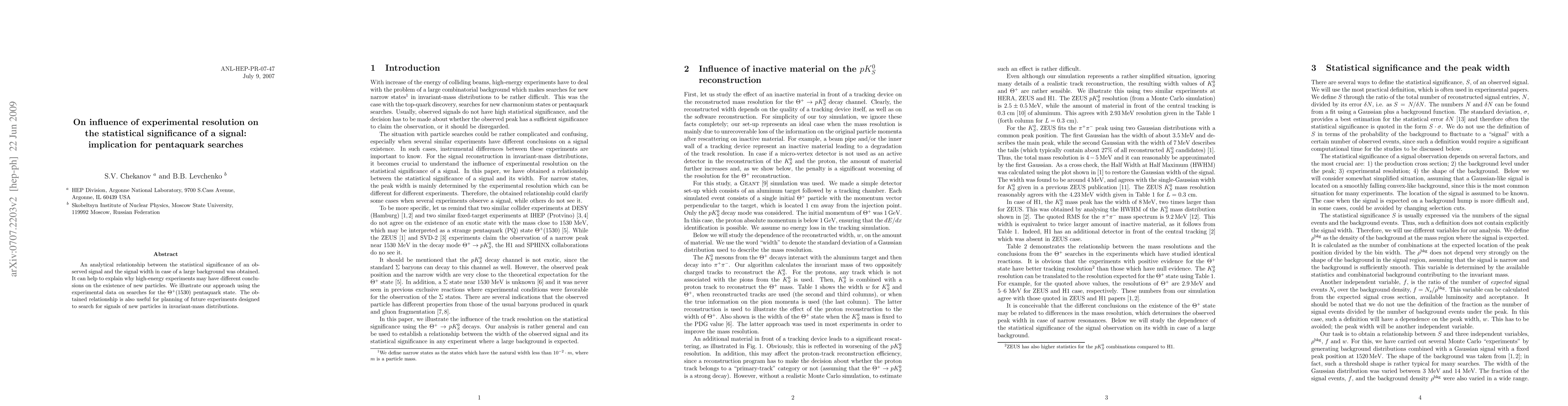 This paper establishes an analytical link between signal width and statistical significance in high-energy experiments, explaining discrepancies in conclusions about new particle detection. It applies this relationship to pentaquark searches, particularly the Theta+(1530) state, and suggests its utility for future experimental planning.