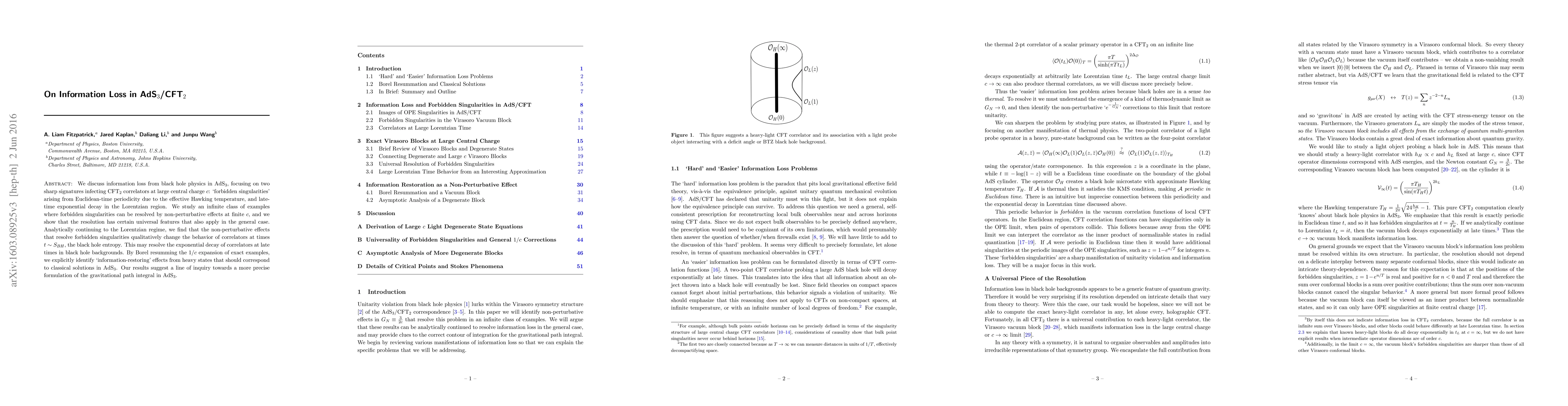 We discuss information loss from black hole physics in AdS$_3$, focusing on two sharp signatures infecting CFT$_2$ correlators at large central charge $c$: 'forbidden singularities' arising from Euclidean-time periodicity due to the effective Hawking temperature, and late-time exponential decay in the Lorentzian region. We study an infinite class of examples where forbidden singularities can be resolved by non-perturbative effects at finite $c$, and we show that the resolution has certain universal features that also apply in the general case. Analytically continuing to the Lorentzian regime, we find that the non-perturbative effects that resolve forbidden singularities qualitatively change the behavior of correlators at times $t \sim S_{BH}$, the black hole entropy. This may resolve the exponential decay of correlators at late times in black hole backgrounds. By Borel resumming the $1/c$ expansion of exact examples, we explicitly identify 'information-restoring' effects from heavy states that should correspond to classical solutions in AdS$_3$. Our results suggest a line of inquiry towards a more precise formulation of the gravitational path integral in AdS$_3$.