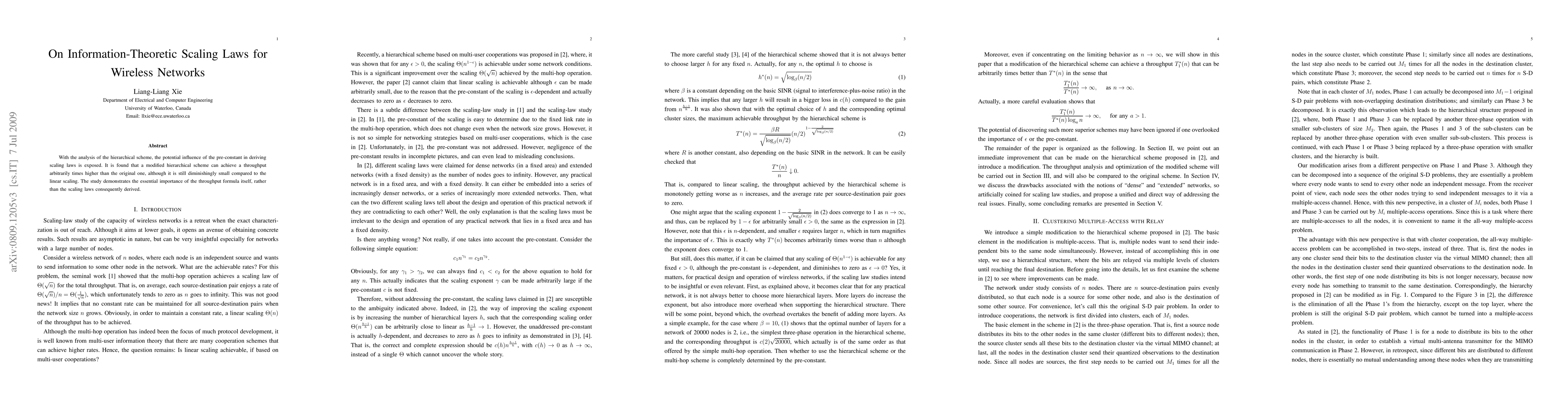 This paper explores the impact of a pre-constant in hierarchical schemes on wireless network scaling laws, revealing that a modified approach can significantly enhance throughput, albeit still falling short of linear scaling. The study underscores the critical role of the throughput formula over the derived scaling laws.