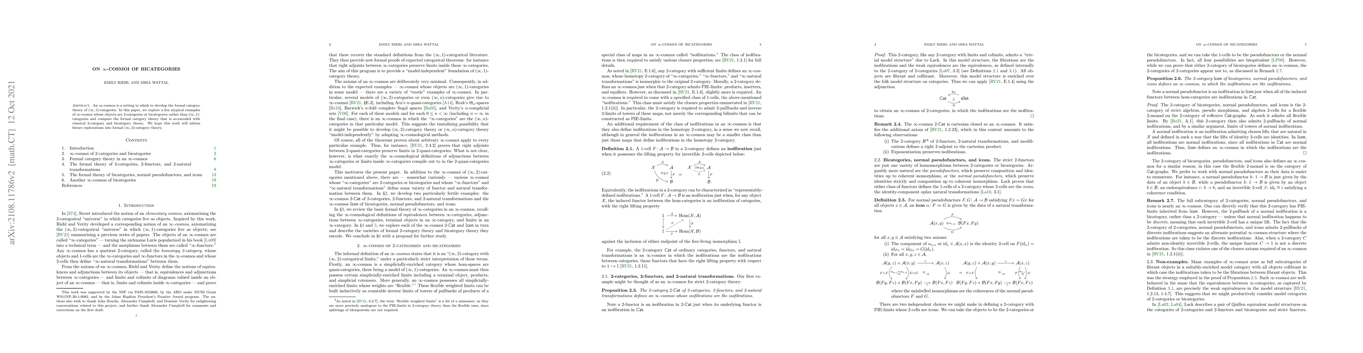 An $\infty$-cosmos is a setting in which to develop the formal category theory of $(\infty,1)$-categories. In this paper, we explore a few atypical examples of $\infty$-cosmoi whose objects are 2-categories or bicategories rather than $(\infty,1)$-categories and compare the formal category theory that is so-encoded with classical 2-category and bicategory theory. We hope this work will inform future explorations into formal $(\infty,2)$-category theory.