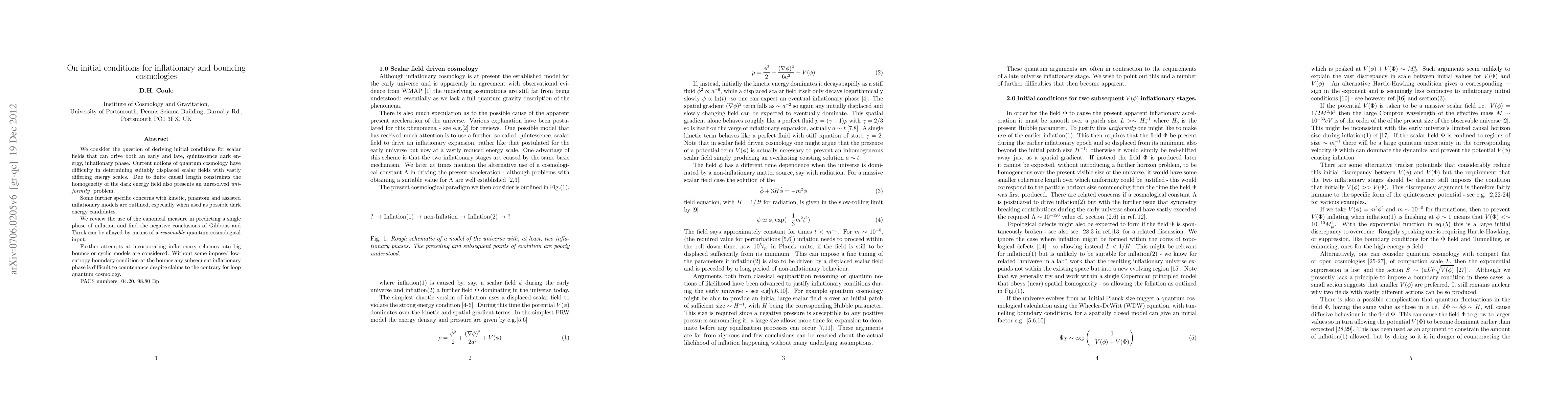This paper explores the challenges in establishing initial conditions for scalar fields driving inflationary and bouncing cosmologies, addressing the unresolved uniformity problem in dark energy. It reviews the canonical measure and suggests quantum cosmological inputs can alleviate previous negative conclusions, while also discussing attempts to integrate inflationary models into cyclic and bouncing universe frameworks.