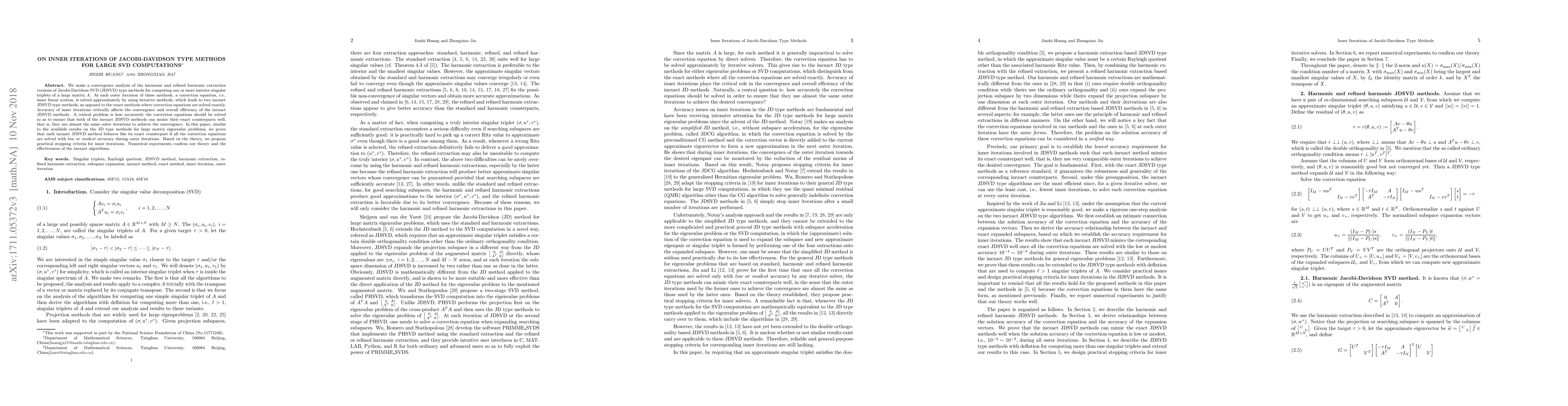 This paper analyzes the convergence of harmonic and refined harmonic versions of Jacobi-Davidson SVD methods for computing interior singular triplets of large matrices. It proposes practical stopping criteria for inner iterations, showing that modest accuracy suffices for the inexact methods to mimic their exact counterparts, confirmed by numerical experiments.
