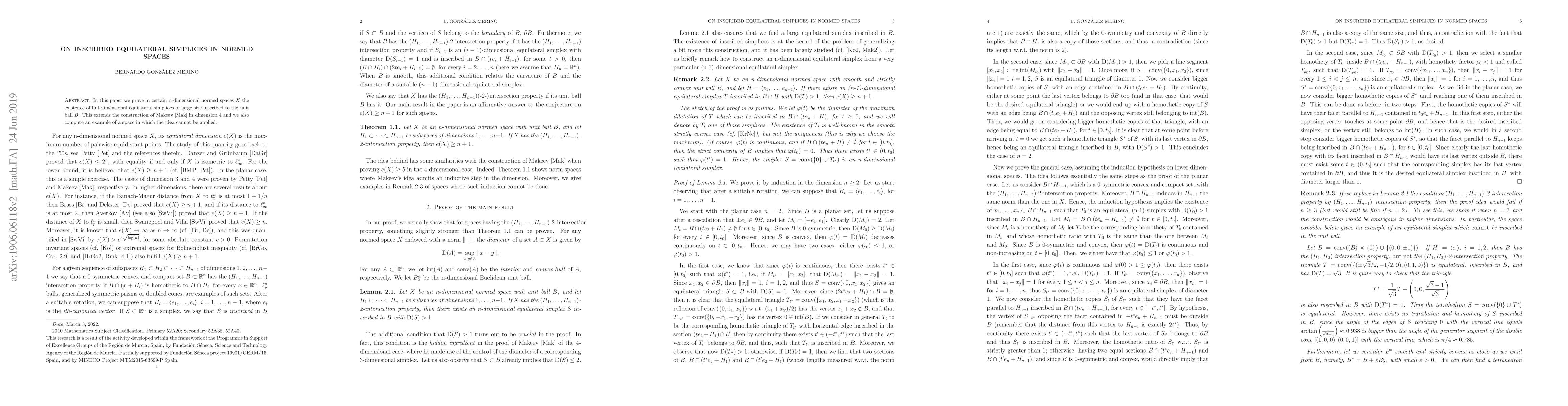 This research is important because it provides new insights into the properties of equilateral simplices and their relationship with normed spaces, which has potential applications in various fields.
