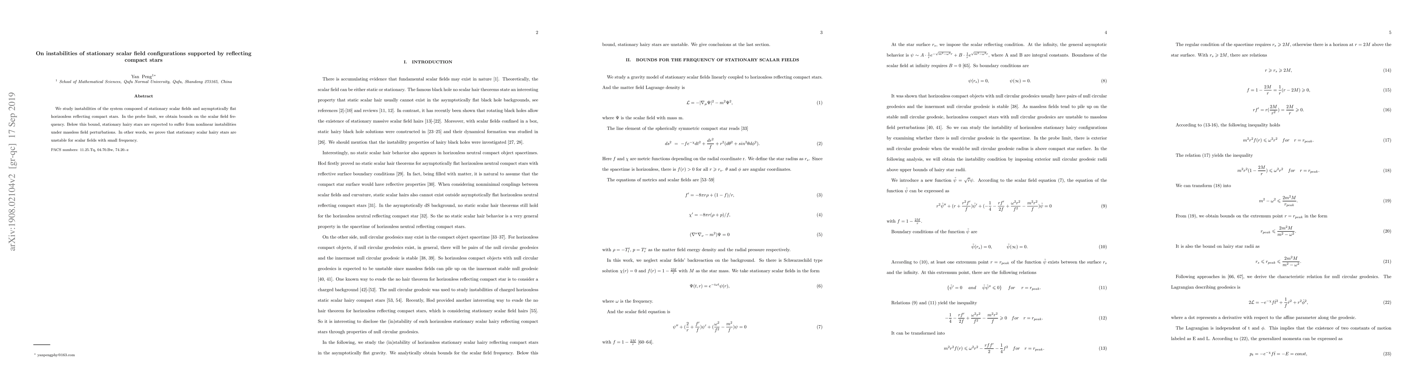 We study instabilities of the system composed of stationary scalar fields and asymptotically flat horizonless reflecting compact stars. In the probe limit, we obtain bounds on the scalar field frequency. Below this bound, stationary hairy stars are expected to suffer from nonlinear instabilities under massless field perturbations. In other words, we prove that stationary scalar hairy stars are unstable for scalar fields with small frequency.