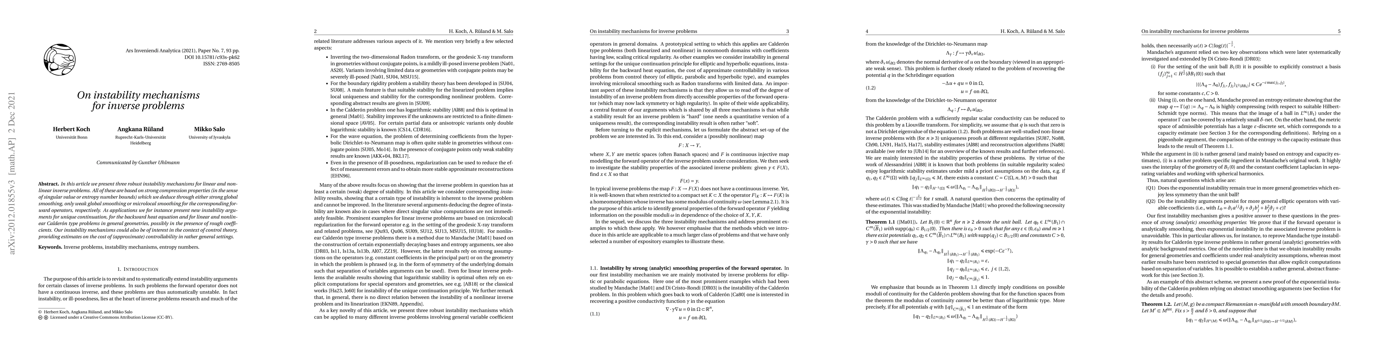 In this article we present three robust instability mechanisms for linear and nonlinear inverse problems. All of these are based on strong compression properties (in the sense of singular value or entropy number bounds) which we deduce through either strong global smoothing, only weak global smoothing or microlocal smoothing for the corresponding forward operators, respectively. As applications we for instance present new instability arguments for unique continuation, for the backward heat equation and for linear and nonlinear Calder\'on type problems in general geometries, possibly in the presence of rough coefficients. Our instability mechanisms could also be of interest in the context of control theory, providing estimates on the cost of (approximate) controllability in rather general settings.