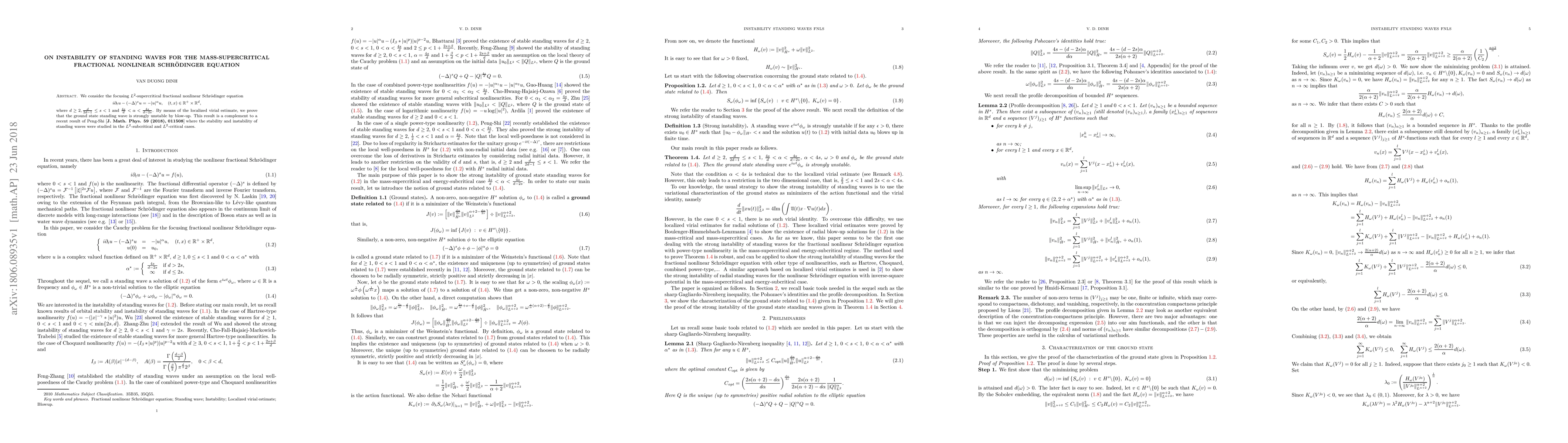 The paper proves that standing waves of a specific type of nonlinear Schrödinger equation are strongly unstable due to blow-up, contradicting existing results for subcritical and critical cases.