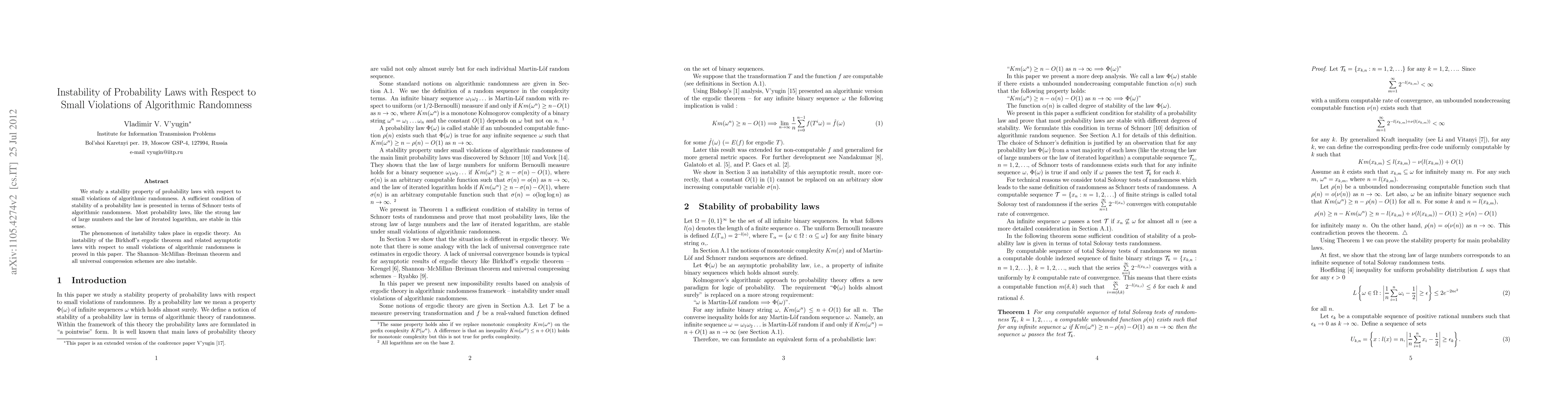 An instability property of the Birkhoff's ergodic theorem and related asymptotic laws with respect to small violations of algorithmic randomness is studied. The Shannon--McMillan--Breiman theorem and all universal compression schemes are also among them.