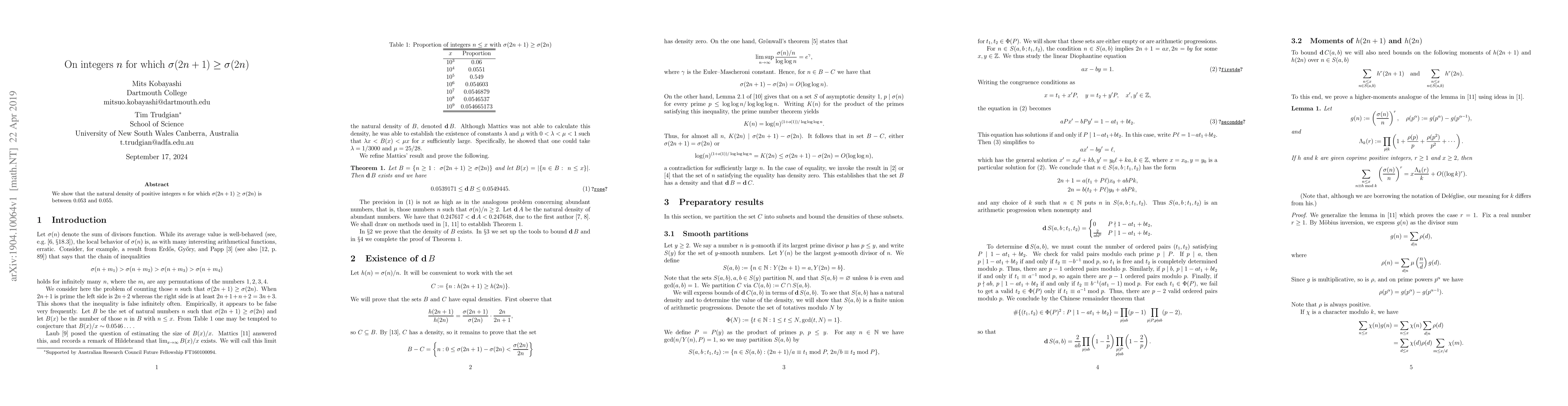 Research shows that about 0.053 to 0.055 percent of positive integers n satisfy a condition related to the sum of divisors function, where the sum of divisors of an odd number is greater than or equal to the sum of divisors of its even counterpart.