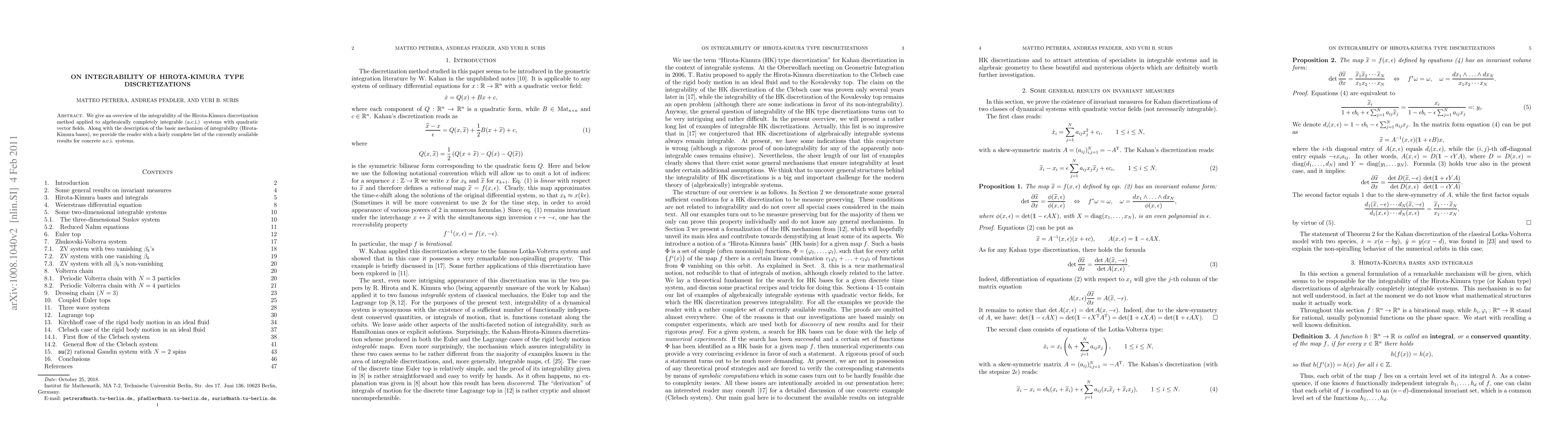 This paper reviews the integrability of Hirota-Kimura discretizations applied to algebraically completely integrable systems with quadratic vector fields, detailing the mechanism of Hirota-Kimura bases and summarizing current results for specific integrable systems.