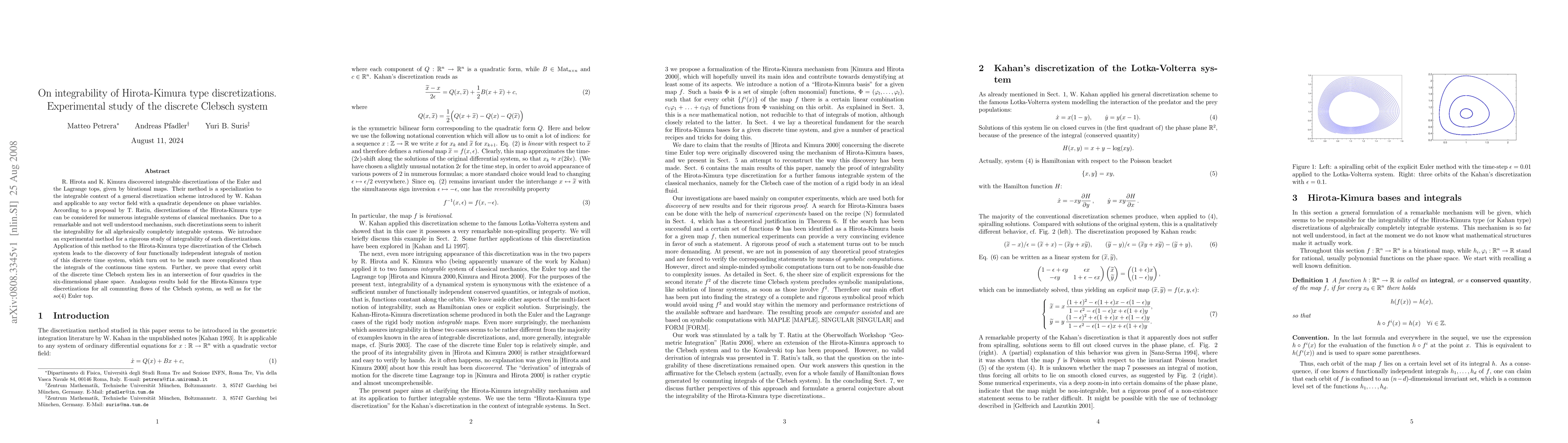 This paper explores the integrability of Hirota-Kimura type discretizations through an experimental method, discovering four functionally independent integrals of motion for the discrete Clebsch system. The study proves that orbits of the discrete time Clebsch system lie in intersections of four quadrics in phase space, extending similar results to commuting flows and the $so(4)$ Euler top.