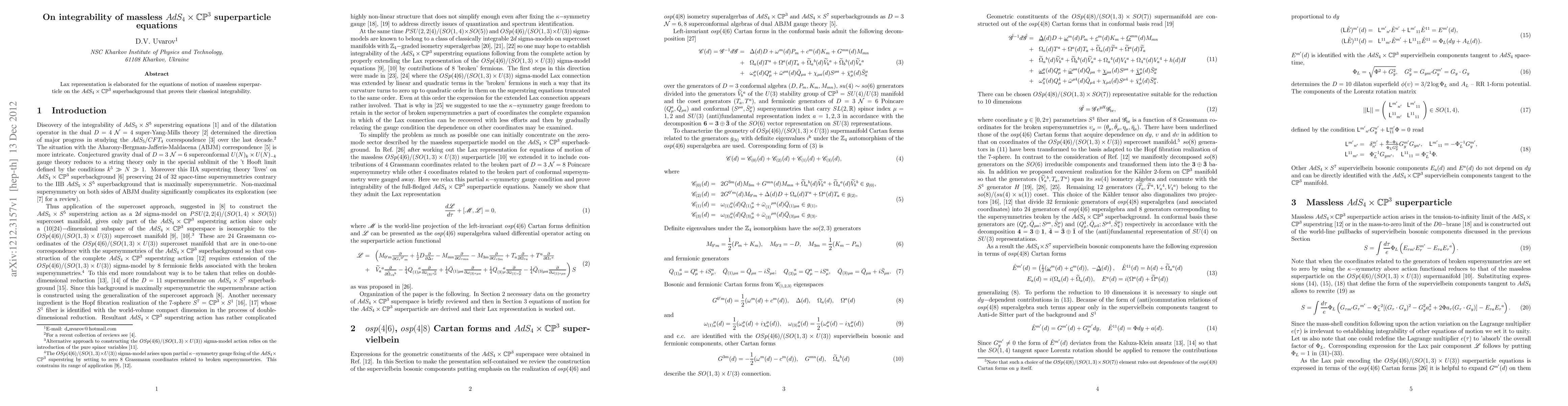 Summary: The research elaborates a Lax representation for the equations of motion of a massless superparticle on the AdS_4 x CP^3 superbackground, demonstrating the classical integrability of these equations.