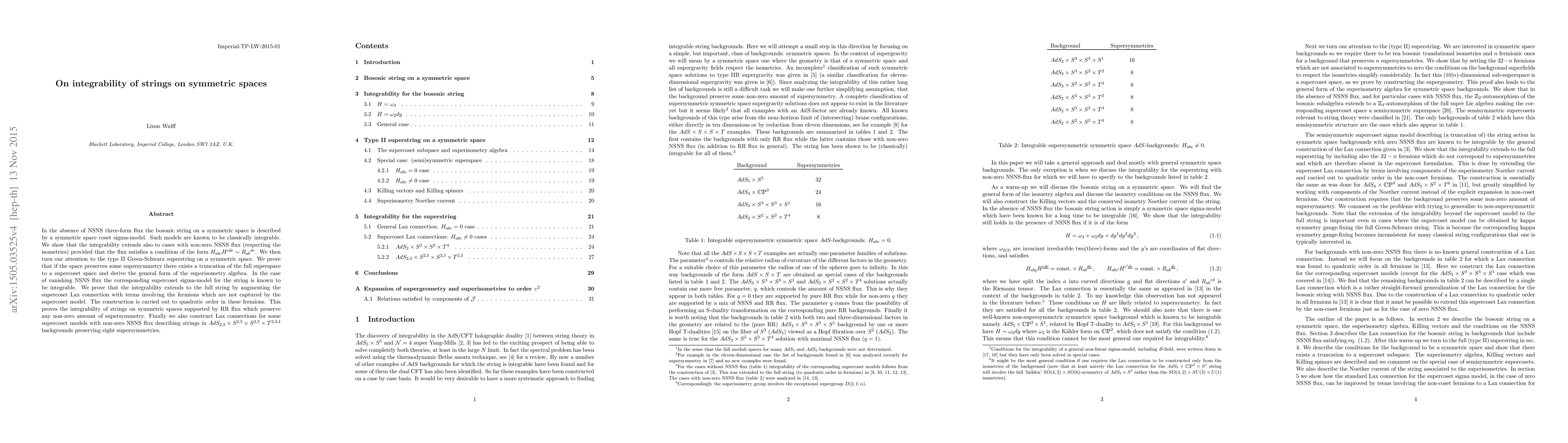 This paper demonstrates the integrability of bosonic and superstring models on symmetric spaces under certain conditions, including the presence of NSNS flux. It shows that integrability extends to cases with non-zero flux provided it satisfies specific conditions, and proves the integrability of superstrings preserving any non-zero amount of supersymmetry in the presence of RR flux.